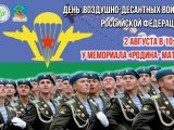 2 августа в 10:00 у мемориала «Родина-мать» состоится торжественное мероприятие, посвященное Дню воздушно-десантных войск.