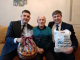 Глава администрации Центрального района Фидарис Хабибуллин и активист партии «Единая Россия» Руслан Сибгатуллин с поздравлениями и подарками посетили фронтовика Серафима Агафонова.