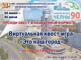 Квест, организованный Центральной городской библиотекой, посвящен 90-летию присвоения Набережным Челнам статуса города.
