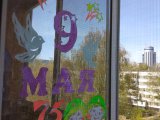 Ветераннарның портретлары, хәрби тематикага рәсемнәр, шулай ук рәхмәт сүзләре торак йортларның һәм мәгариф учреждениеләренең тәрәзәләрен бизи.