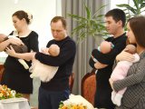 В зале чествовали пять челнинских семей, у которых родились двойняшки. В двух семьях это первенцы, ещё в двух – вторые и третьи дети, в одной из семей – это пятый и шестой ребенок.