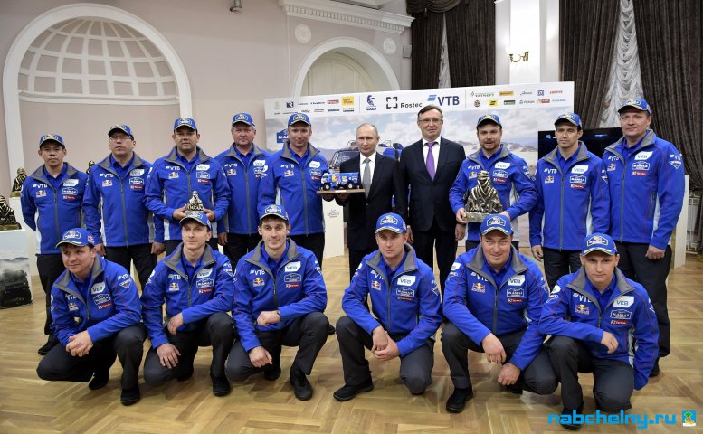«Все понимают, что это такое, что это труд, все следят за тем, как вы боретесь. Это уникальное просто достижение, по-другому не скажешь. «Дакар» простым не бывает. И все, кто понимает, что это такое, все следят за тем, как вы боретесь за первенство, причём с замиранием сердца. Кроме того что это тяжёлая работа, это еще и опасная работа в полном смысле этого слова. То, что вам 15 раз удается выиграть, – это просто невероятный результат, невероятное достижение, причём это командное достижение. Конечно, пилоты играют самую, наверное, существенную роль, но тем не менее без подготовки техники, без обслуживания, без командной работы результата бы уже не было. Это говорит и о предприятии, на котором производится техника, и об уровне подготовки всей команды. Вам всего самого доброго. Хотелось бы и дальше видеть ваши успехи. Надеюсь, так оно и будет!», - сказал Владимир Путин. Спортсмены вручили главе государства модель спортивного «КАМАЗа». В конце встречи состоялось общее фотографирование.