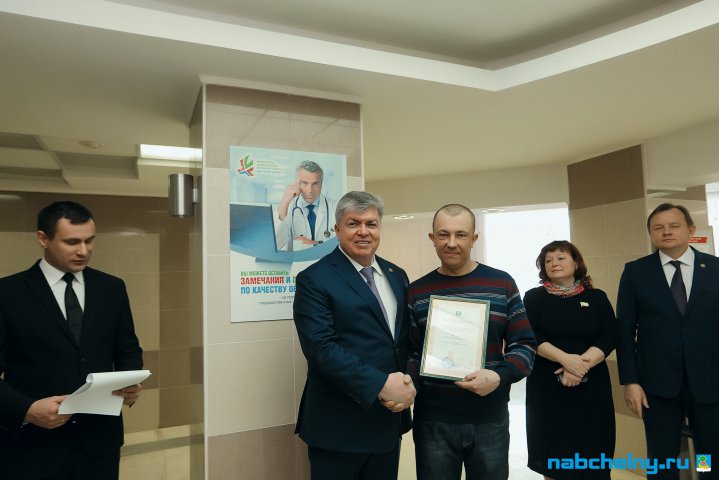 В словах поздравлений с завершением ремонтных работ Наиль Магдеев произнёс: "То, что здесь сделано - качественно улучшило логистику, условия для людей. Сегодня всё это работает на благо жителей города. Мы с вами должны подстраиваться под требования современных пациентов с каждым разом набираясь знаний и умений, чтобы беречь здоровье людей". В конце выступления Наиль Магдеев пожелал успехов коллективу учреждения. Мэр также вручил Благодарность Исполнительного комитета города сотруднику ООО "Строй- Ар" Олегу Ильину.