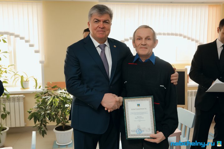 В конце обхода прошло награждение. Благодарственным письмом мэра и почётной грамотой награждены директор ООО "Град-Строй" Руслан Чутаев, сотрудники компании: маляр Нина Мингалиева, плотник Камиль Сингатуллов, маляр Раиса Грачёва, штукатур-маляр Зинаида Ермакова, плиточник Николай Максимов.