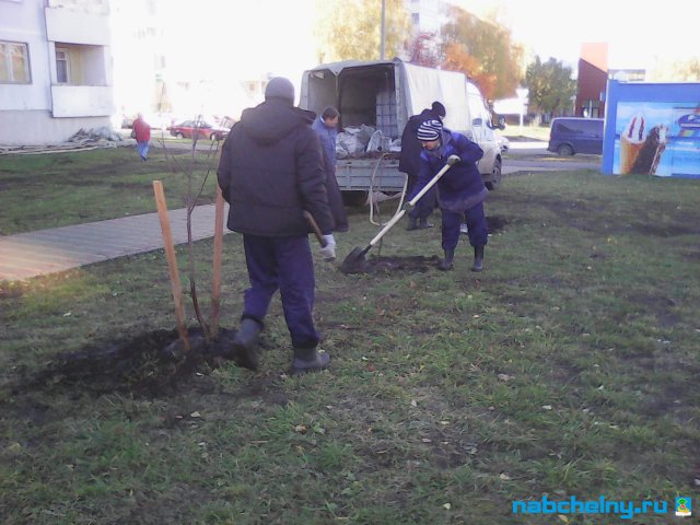 Кереселидзе скверында «Мәдәният һәм ял паркы» хезмәткәрләре 25 миләш, «Автозавод» хезмәткәрләре Җиңүнең 40 еллыгы урамы буенча 52 агач утырттылар.
