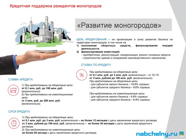 АО «Корпорация «МСП» и АО «МСП Банк» предлагает кредитно-гарантийные продукты для субъектов малого и среднего предпринимательства, осуществляющих свою деятельность на территории моногородов.