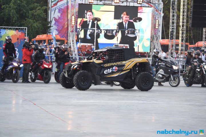 В эти минуты на главном Майдане продолжается празднование Дня молодежи. Торжественное открытие мероприятия началось с участия барабанного шоу "Splash". Выступление уфимских музыкантов поддержали команды мото-байк клуба "Ночные волки" и СТК "Экстрим спорт" ("Наиком").  Рев моторов был слышен по всему майдану парка "Прибрежный". Челнинская молодежь включила мощь автозвука, свое мастерство продемонстрировали и картингисты. Также зрители смогли лицезреть выступления участников Всероссийского соревнования по Багги, приуроченного 50-летию Камаза.