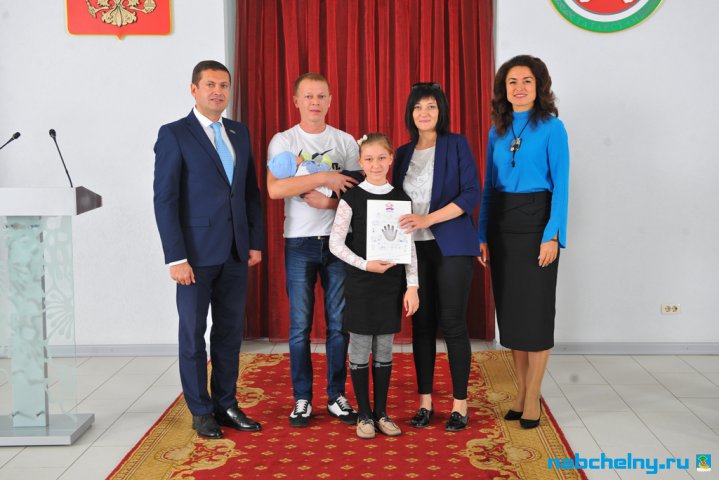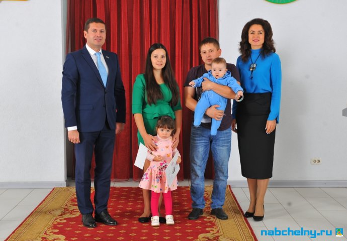 Начальник Управления ЗАГС Равиля Зарипова и начальник Управления Пенсионного фонда, депутат Городского Совета Эдуард Фаттахов вручили сертификаты 65 челнинским семьям.