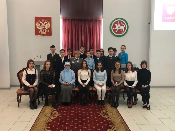 Во Дворце торжеств города состоялось торжественное вручение паспортов юным гражданам города достигших 14-летнего возраста. Мероприятие прошло в рамках реализации проекта "Час гражданственности". Челнинцев поздравили ветеран паспортно-визовой службы, заместитель председателя Совета ветеранов отдела полиции № 2 Зинаида Фомина, специалист Исполкома местного отделения партии “Единая Россия” Алена Шамсуллина, активисты "Молодой Гвардии", родные и близкие ребят.