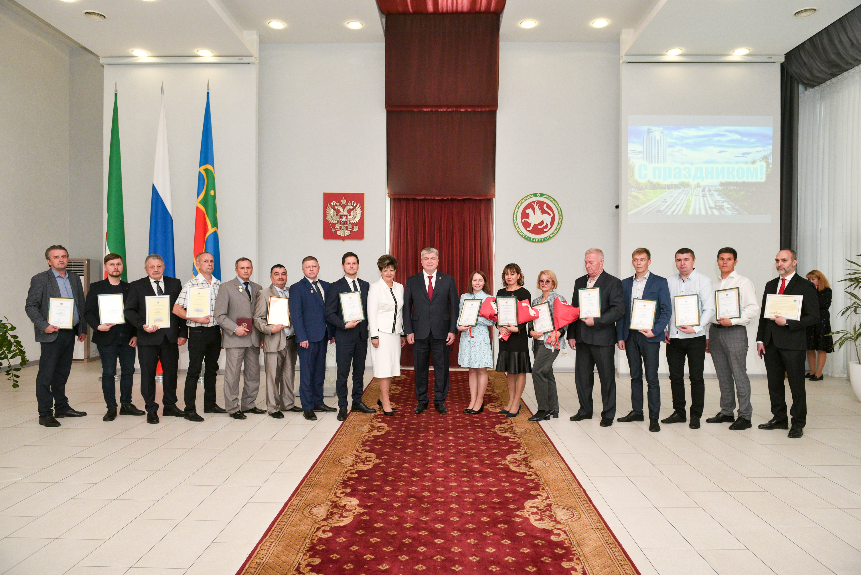 За заслуги в области строительства и добросовестный труд Почетной грамотой Министерства строительства, архитектуры и жилищно-коммунального хозяйства Республики Татарстан награжден директор муниципального унитарного предприятия «Служба градостроительного развития» Ленар Сальманов.