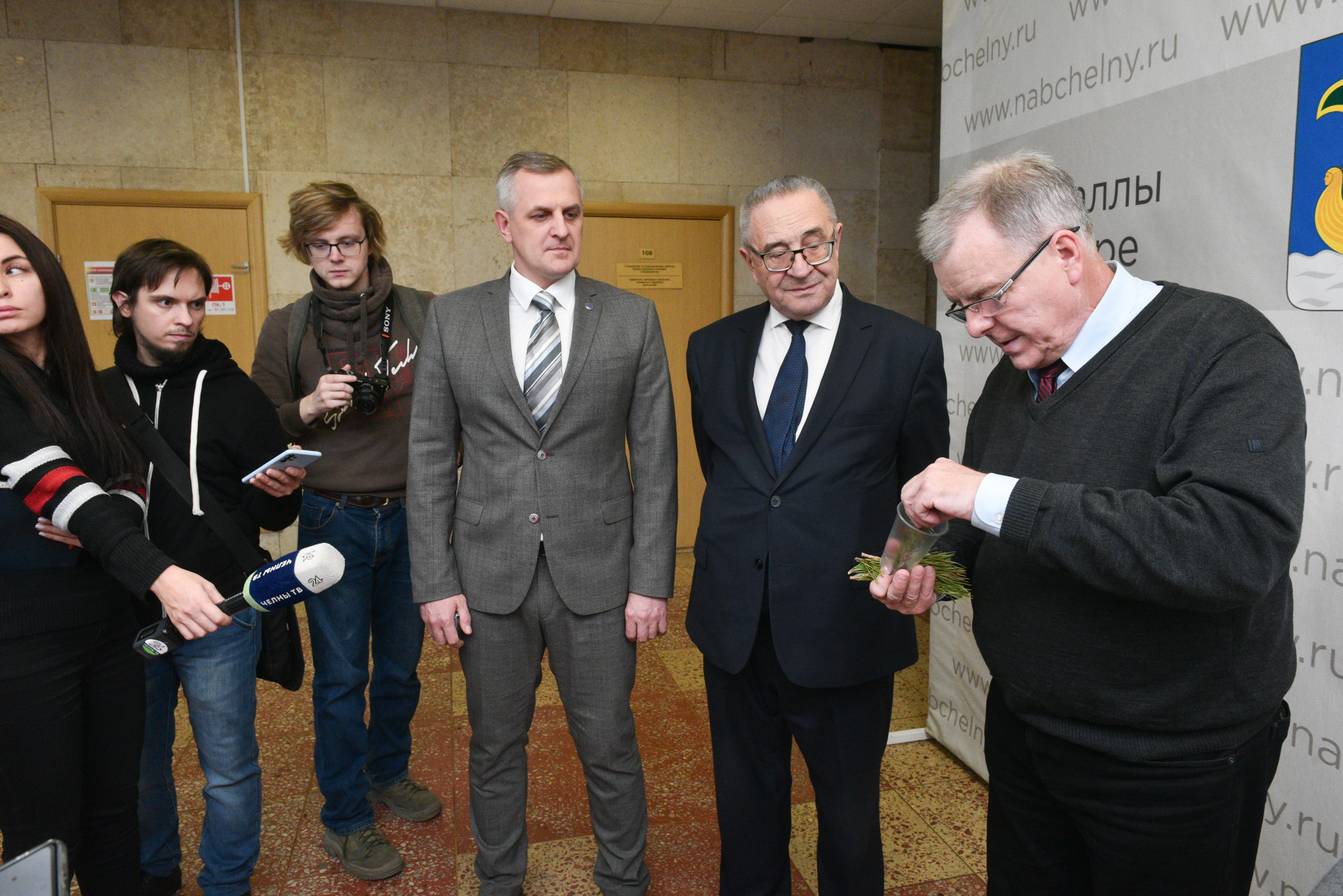 Председатель Государственного Совета Республики Татарстан Фарид Мухаметшин и мэр города Набережные Челны Наиль Магдеев. В торжественной линейке также приняли участие депутаты Государственного Совета Республики Татарстан Светлана Захарова и Андрей Фомичев.