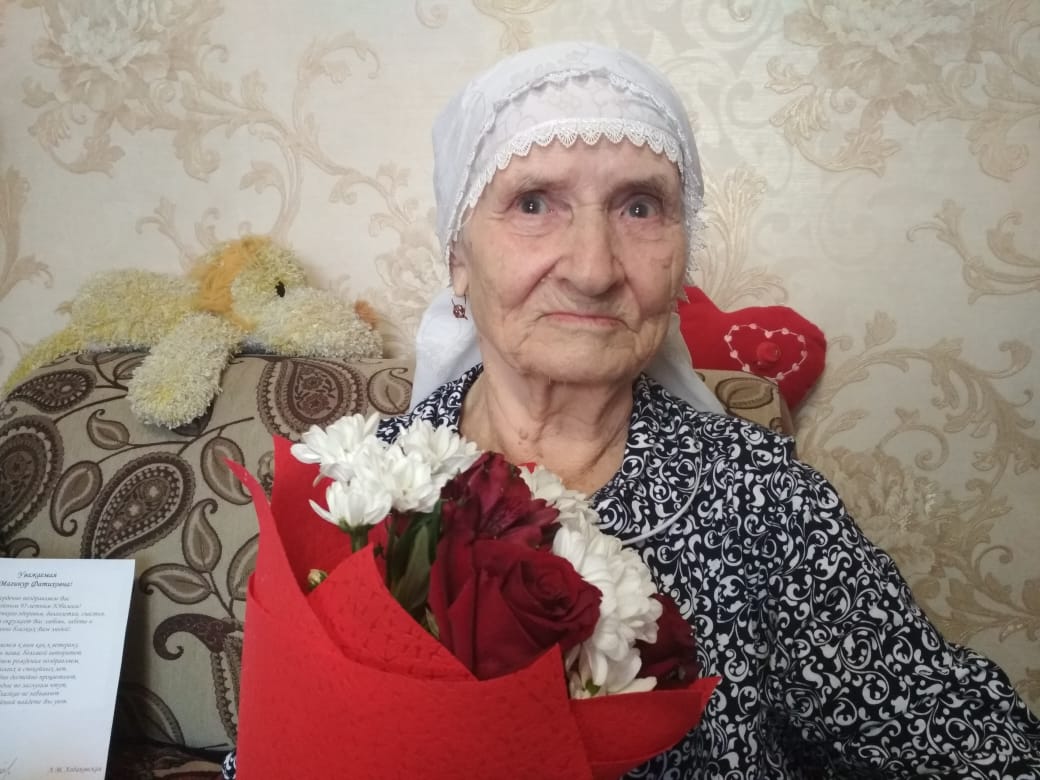 Сегодня от имени Президента Российской Федерации Владимира Путина и мэра города Наиля Магдеева получила поздравления ветеран Великой Отечественной войны, отмечающая свой 95-летний юбилей Магинур Фатиховна Шафигуллина.