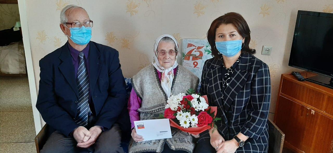 Ветераны Великой Отечественной войны Лидия Афанасьевна Стахеева и Мария Александровна Карташова, Анастасия Михайловна Казанцева отмечают юбилей.