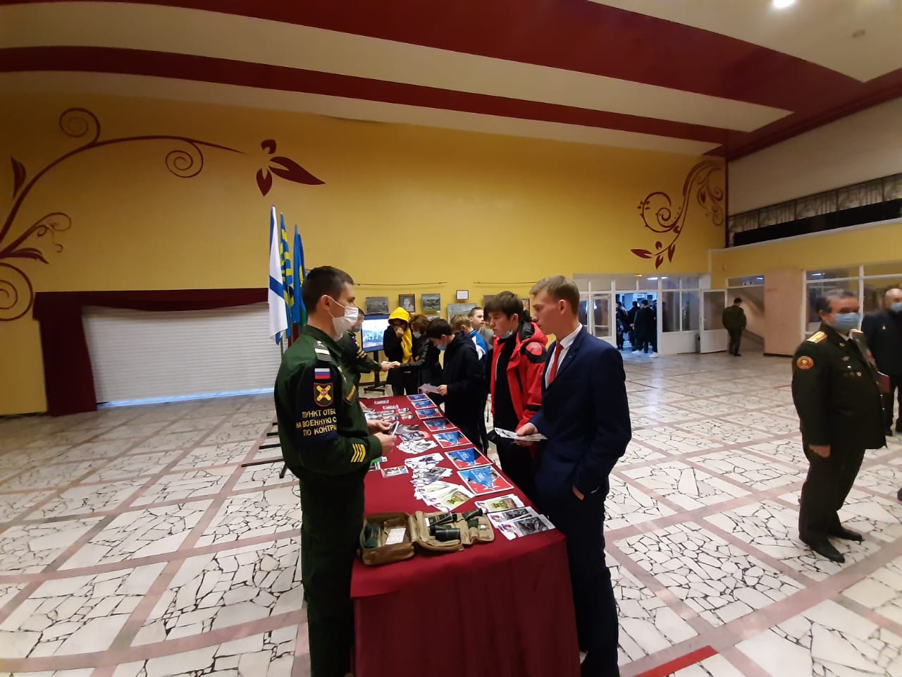 В фойе дворца культуры «КАМАЗ» челнинцам была представлена выездная выставка с презентацией «Военная служба по контракту - твой выбор!» и раздачей тематических буклетов.