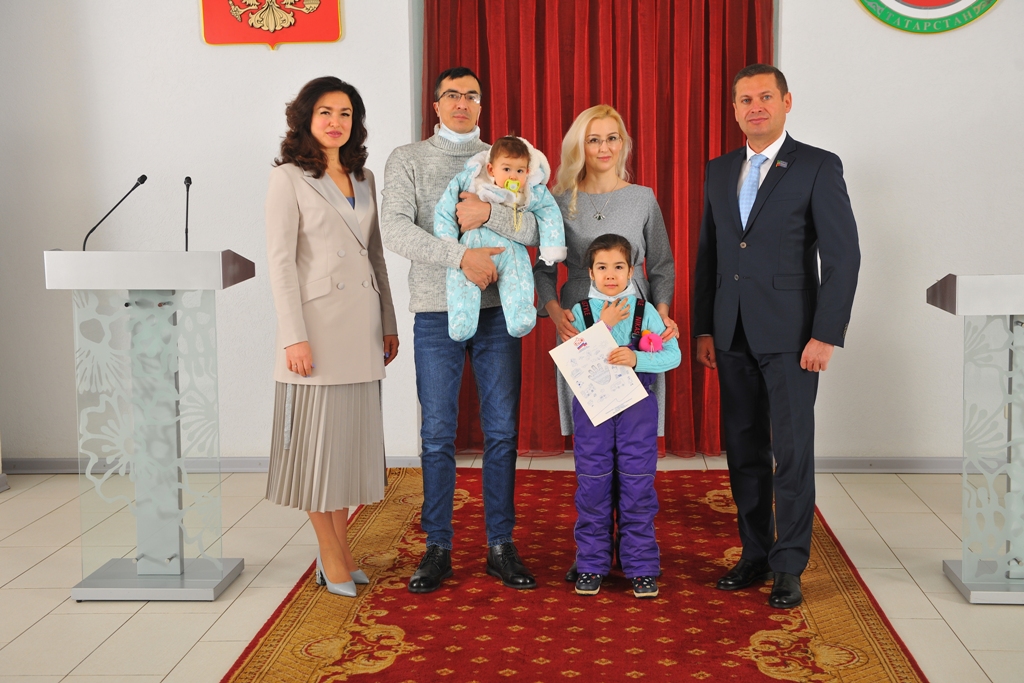 Во Дворце торжеств состоялось вручение сертификатов на материнский капитал. В этот день сертификаты получили 16 челнинских семей. Поздравили семьи начальник Управления ЗАГС Равиля Зарипова и депутат Городского Совета, начальник Управления Пенсионного фонда Эдуард Фаттахов.