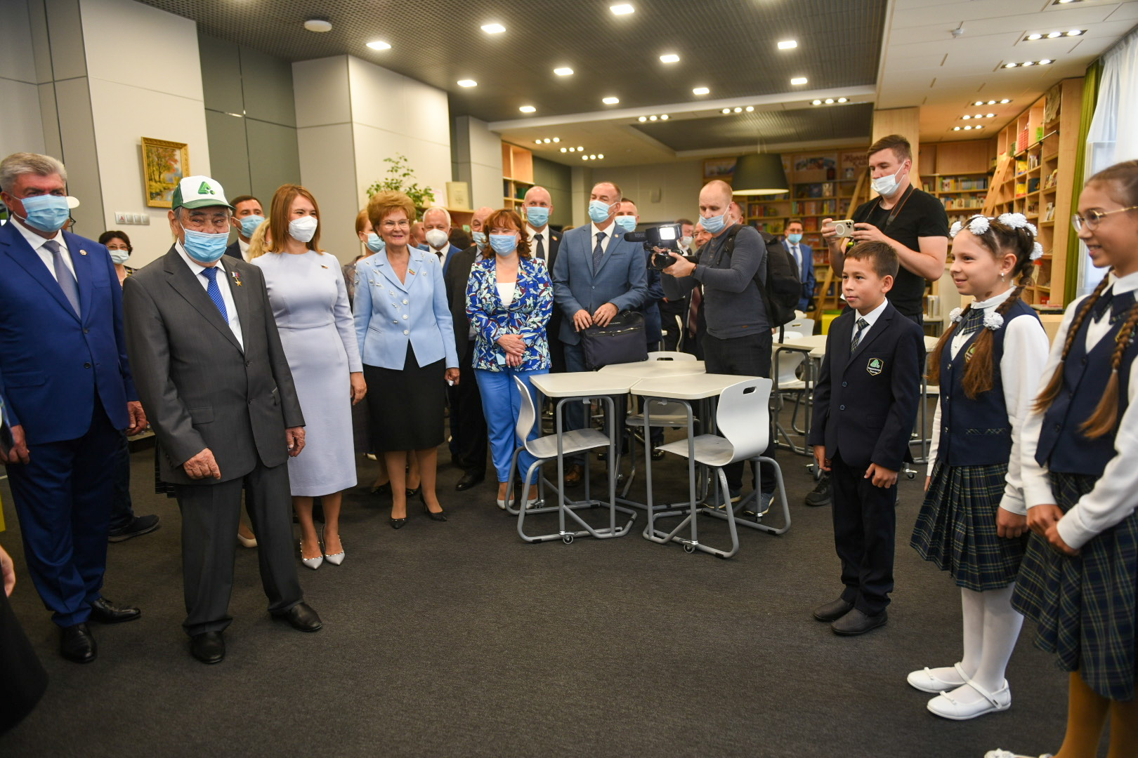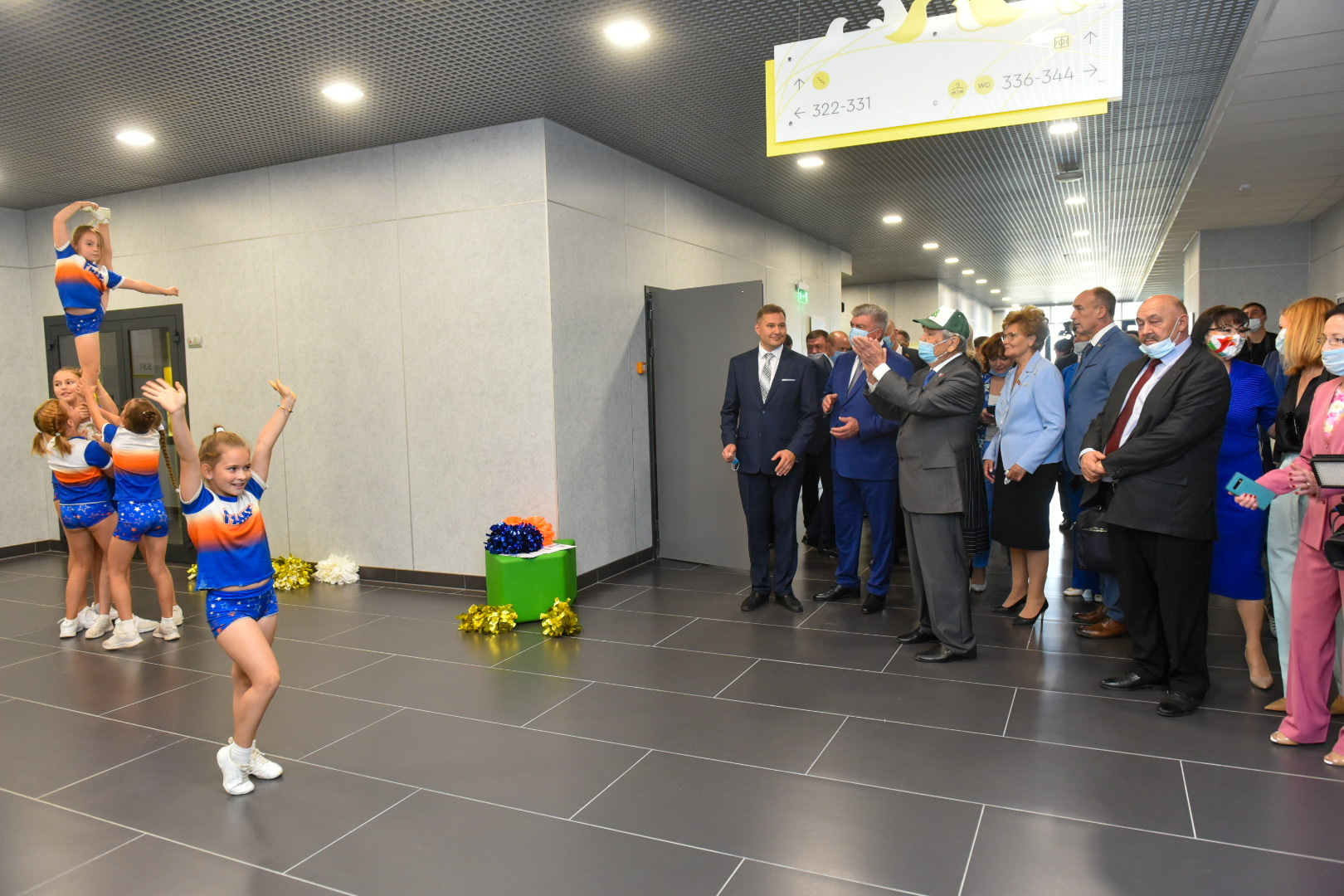 ТР Дәүләт Киңәшчесенә бина буйлап экскурсия уздырдылар, гимназия укучылары белән таныштырдылар. Минтимер Шәймиев уку йортының эчке ягына уңай бәя бирде - эргономияле җиһазлар, матди-техник тәэмин ителеш. Исегезгә төшерәбез, әлеге полилингваль гимназия - республикада дүртенче. Хәзерге вакытта республика буенча аларның санын алтыга җиткерү планлаштырылган.