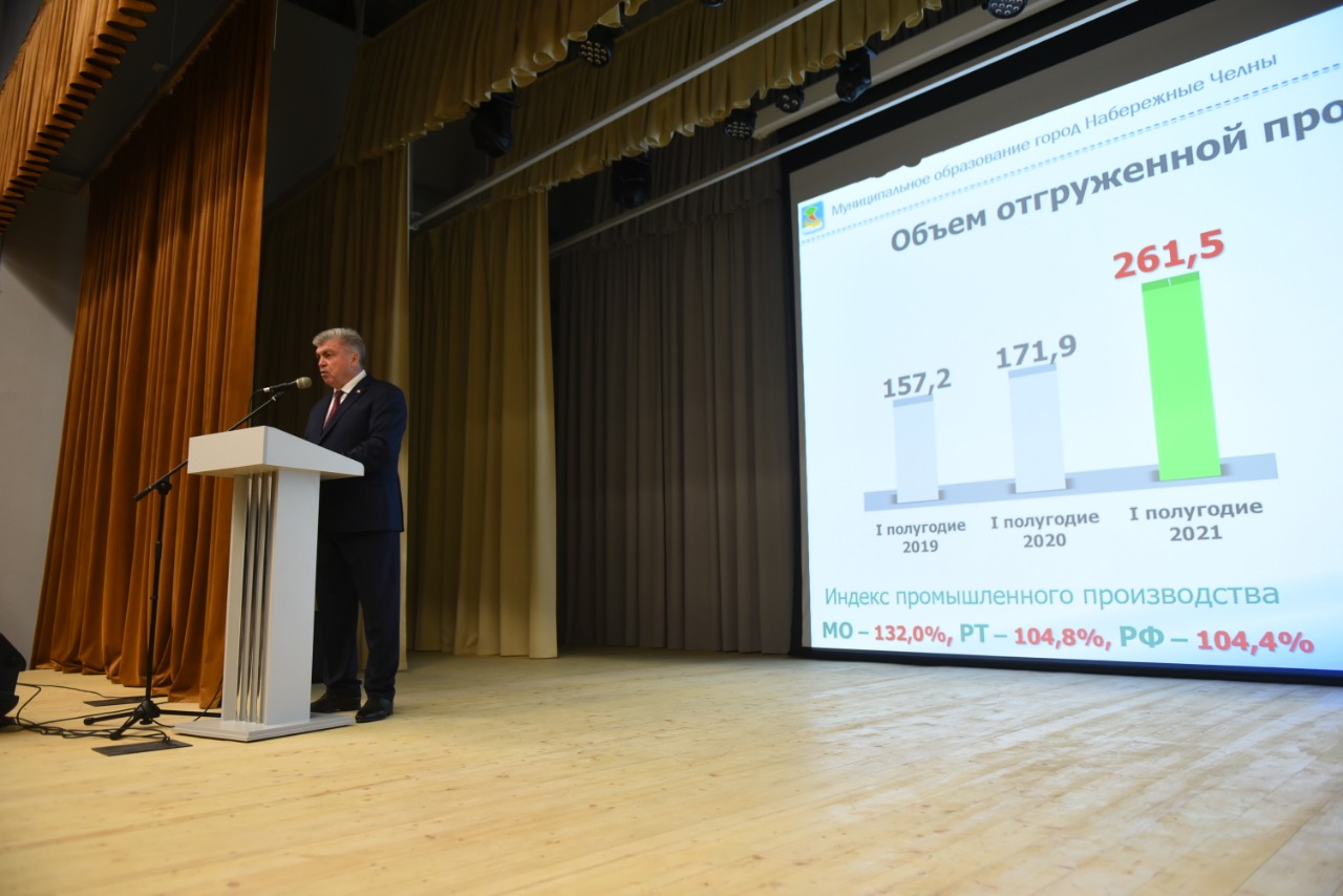 Наил Мәһдиев яңа 14 нче гимназиядә шәһәрдәшләр белән очрашты. Актлар залында предприятие җитәкчеләре, укытучылар җыелды. Шәһәр мэры беренче яртыеллыкның социаль-икътисади нәтиҗәләре турында сөйләде һәм перспектив бурычларны билгеләде. Әңгәмә шәһәрнең икътисади уңышлары турында фикер алышудан башланды. «Һичшиксез, бу - «КАМАЗ», ул аягында нык басып тора, югары дәрәҗәдәге катлаулы көнкүреш техникасы җитештерә торган Haier компаниясе. Легендар КАМАЗлар чыгара торган шәһәр белән беррәттән без телевизор, суыткычлар чыгара торган шәһәргә әйләнәбез.