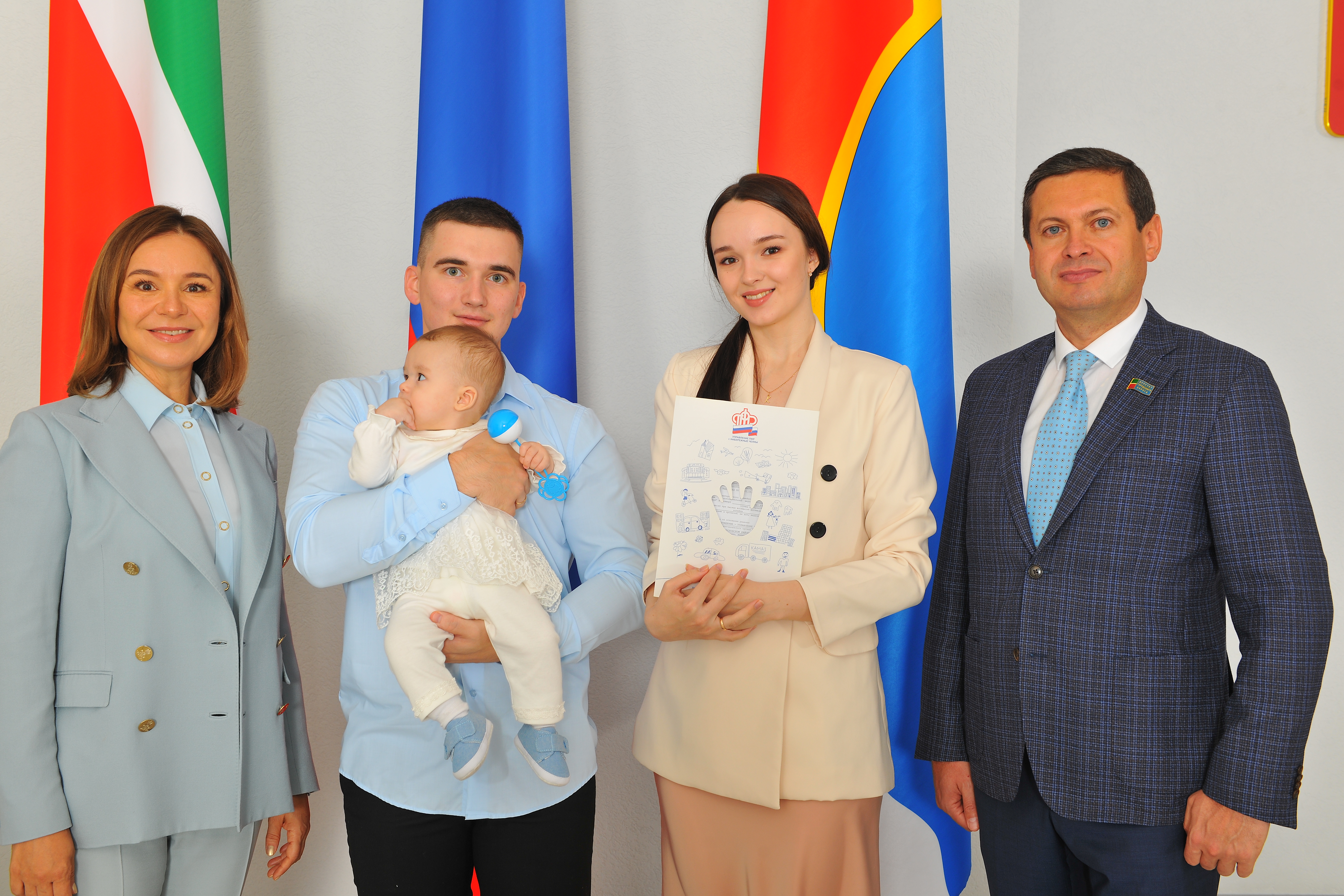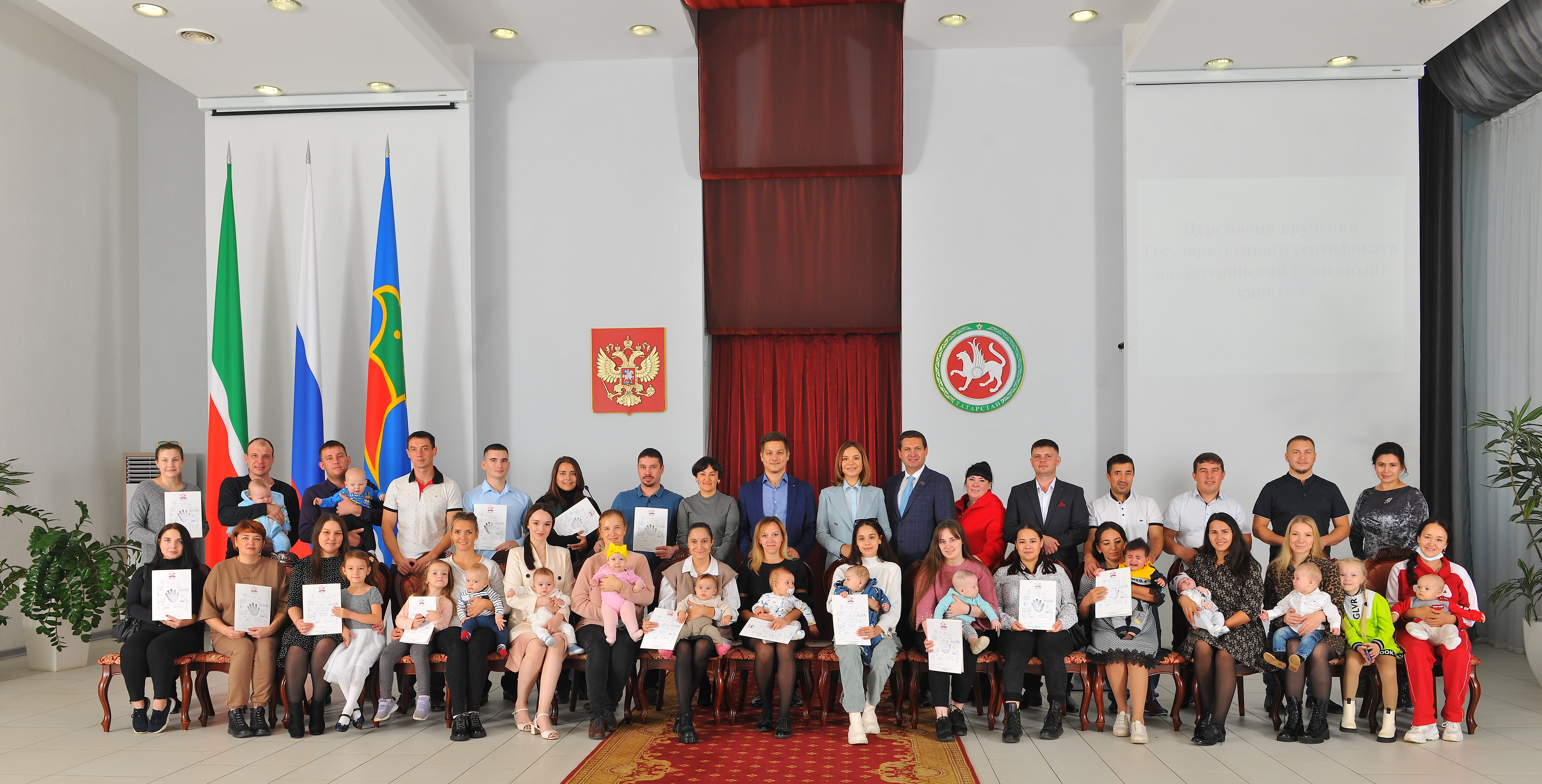 Дәүләт сертификатларын тапшыру тантанасы Яр Чаллыда атна саен үткәрелә, чара барышында Пенсия фонды белгечләре ата-аналарга әлеге акчаларны файдалану юллары турында консультацияләр бирә.