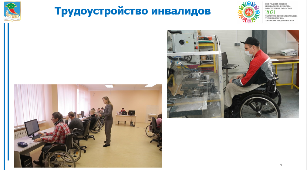 За текущий год в Центр занятости обратились 560 инвалидов, из них 360 человек (64%) трудоустроены на различные предприятия, 47 безработных направлены на профессиональное обучение.На сегодняшний день в центре занятости имеется 178 вакансий для инвалидов.