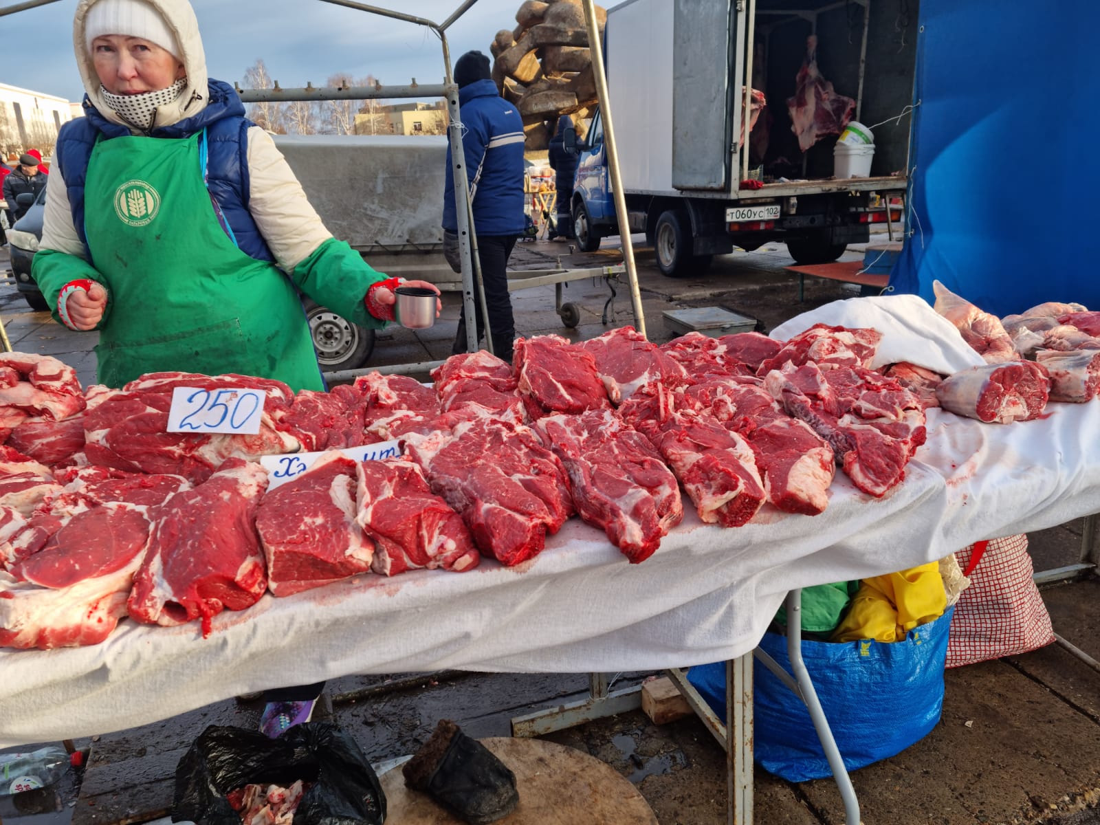 В широком ассортименте представлено мясо говядины, гусей, уток, кур.