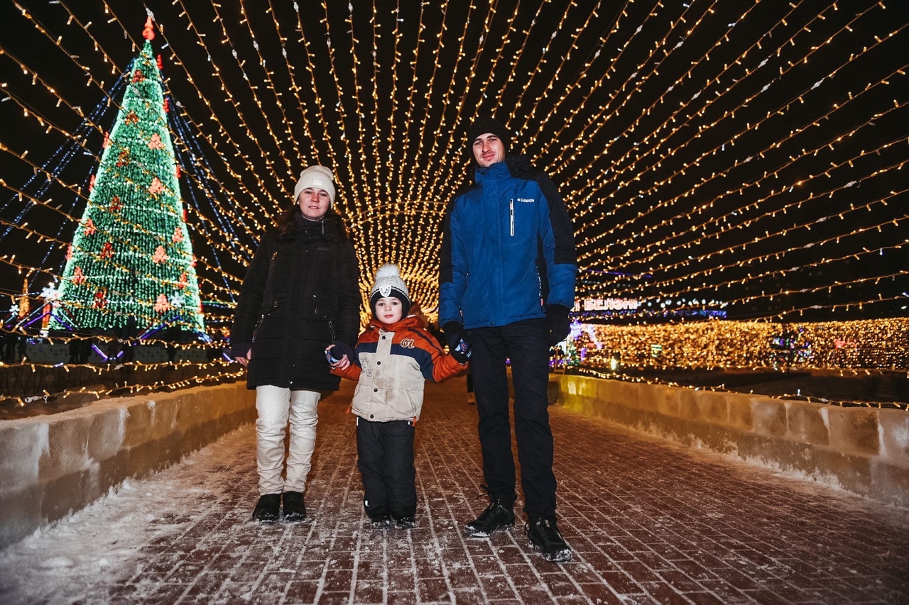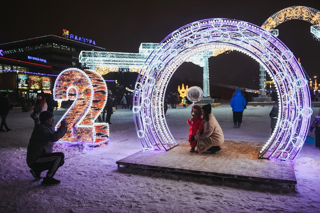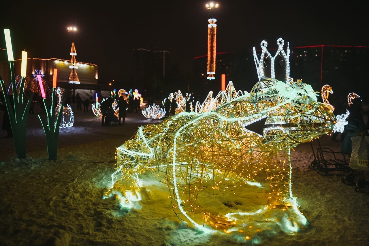 Перед зрителями прошла карнавальная колонна: снеговики, медведи, деды морозы и шахматные фигуры, на главной сцене выступили творческие коллективы и солисты города.