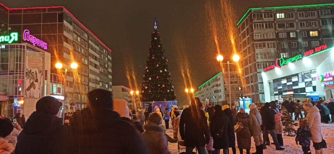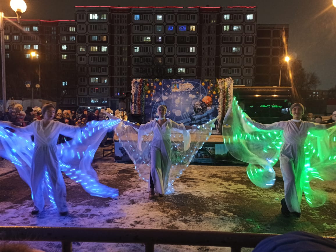 Бәйрәм кунакларын шәһәрнең «Эврика» мәдәният үзәге, 3 нче балалар музыка мәктәбенең иң яхшы солистлары һәм иҗади коллективлары чыгышлары белән каршы алды, Кыш Бабай һәм Кар Кызы котлаулары белән сөендерде. «Маскарад костюмы» конкурсына йомгак ясалды һәм җиңүчеләрне бүләкләү узды.