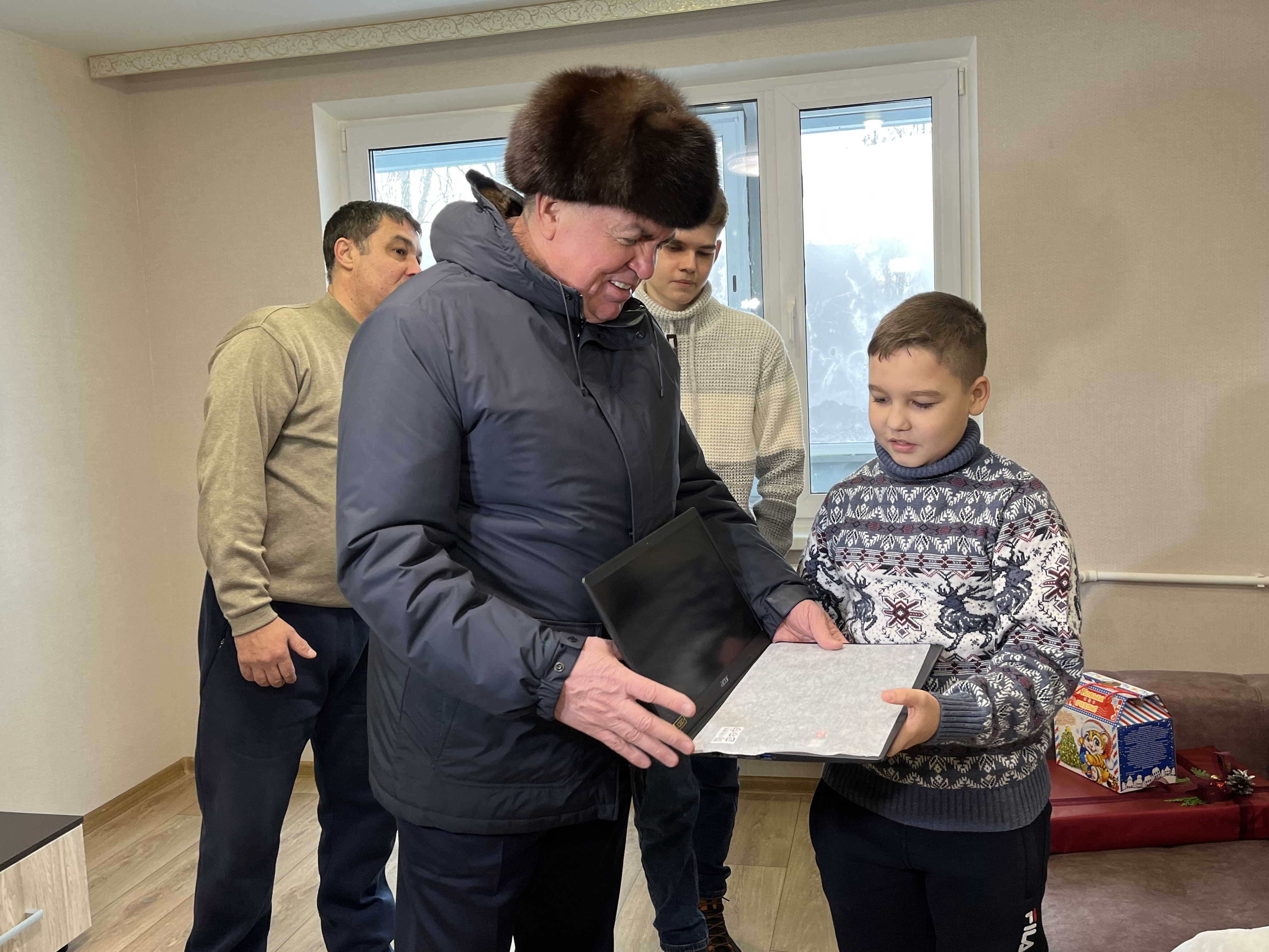 Дети получили от мэра новогодние подарки: ноутбук и сладости.