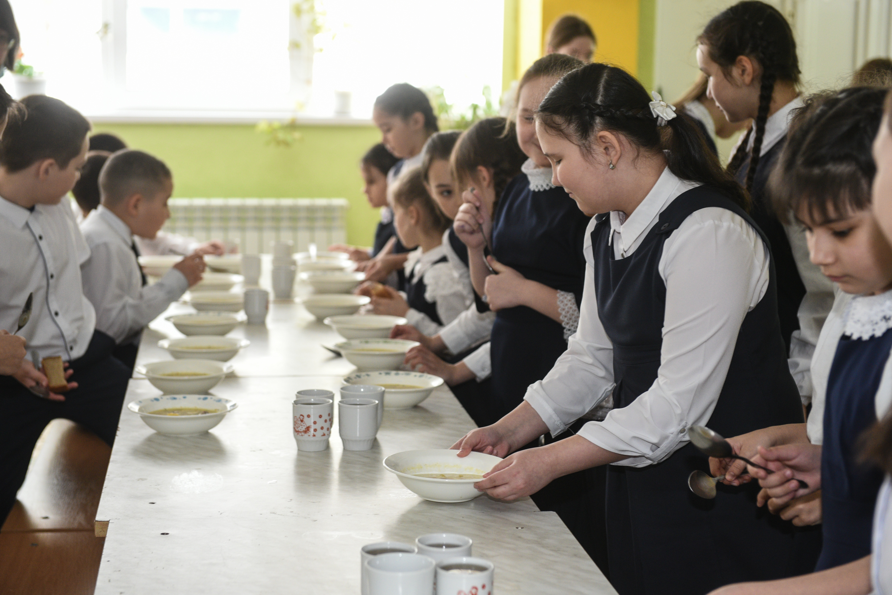 «Они не готовят один раз с утра на весь день. Они накрывают только на то количество, которое придет в перемену, это приблизительно 220 детей. То есть они успевают приготовить, накормить детей, собрать посуду, помыть ее, и снова приготовить», – пояснил Рустем Хузин.
