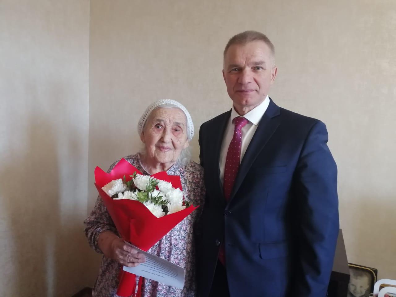 Юбиляру передали подарки и поздравления от имени президента России Владимира Путина, мэра города Набережные Челны Наиля Магдеева, и.о. главы администрации Комсомольского района Фидариса Хабибуллина.