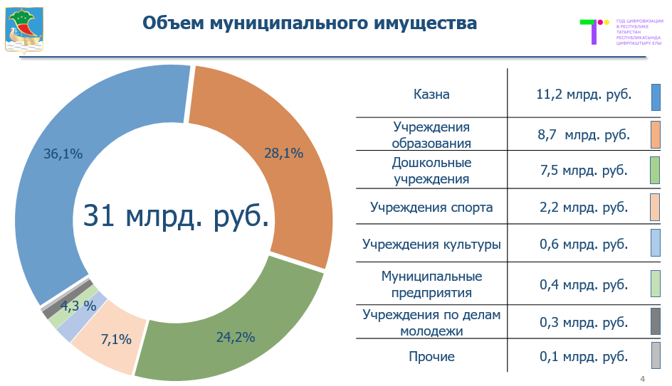 Объем муниципального имущества составляет более 31 млрд руб., из которых 5 млрд руб. приняты в муниципальную собственность в 2021 году.