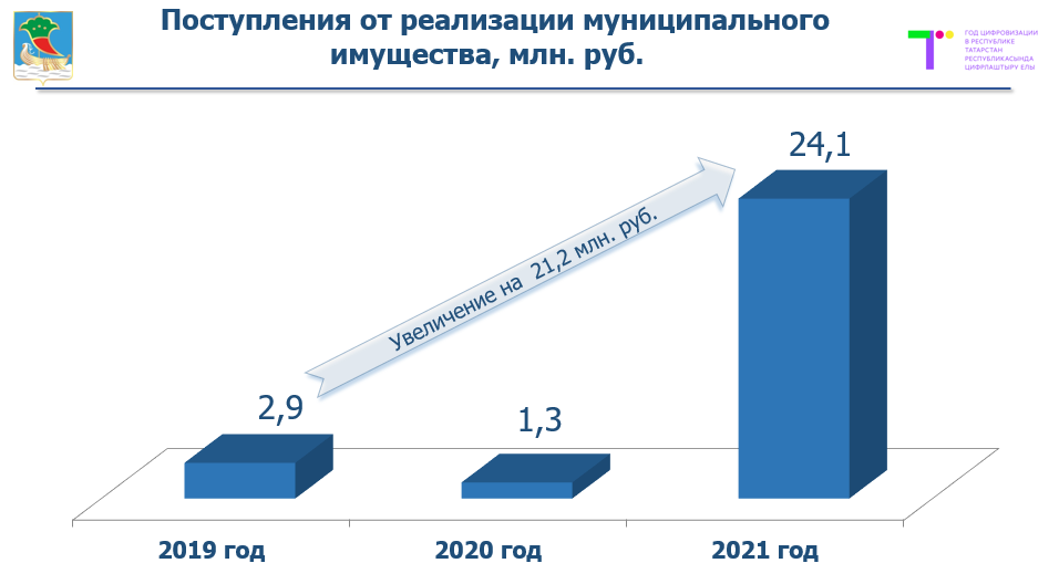 «Одним из важных показателей эффективности управления муниципальным имуществом является бюджетная эффективность, отражающая финансовые поступления в бюджет города от использования муниципальной собственности», - сказал он, сообщив, что в 2021 году от использования и приватизации муниципального имущества в городской бюджет поступил 1 млрд 121 млн руб., что на 338 млн руб. больше по сравнению с 2020 годом. Рост составил 43 %. Плановые показатели перевыполнены на 16 %.
