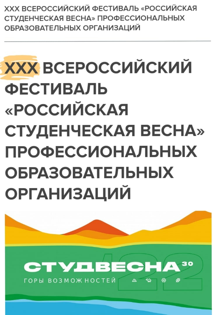 В Челябинске проходит XXX (I) всероссийский фестиваль «Российская студенческая весна» профессиональных образовательных организаций. Мероприятие реализуется в рамках федерального проекта «Социальные лифты для каждого» национального проекта «Образование».