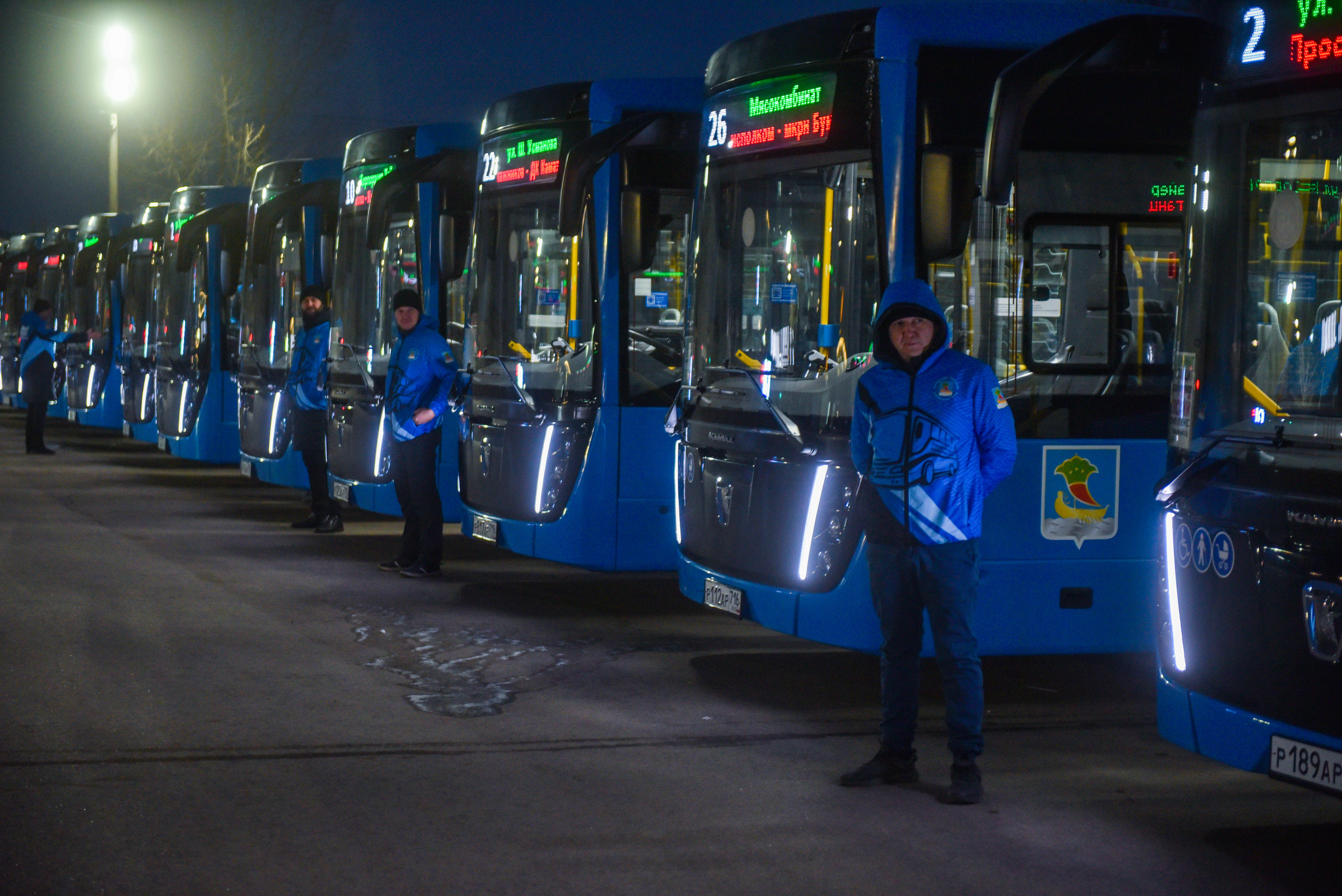 Сегодня ранним утром мэр города Наиль Магдеев приехал на площадку МУП «Горкоммунхоз», где в ровный ряд выстроились 44 автобуса большой вместимости. Все они прошли необходимые процедуры оформления и получили государственные номера.
