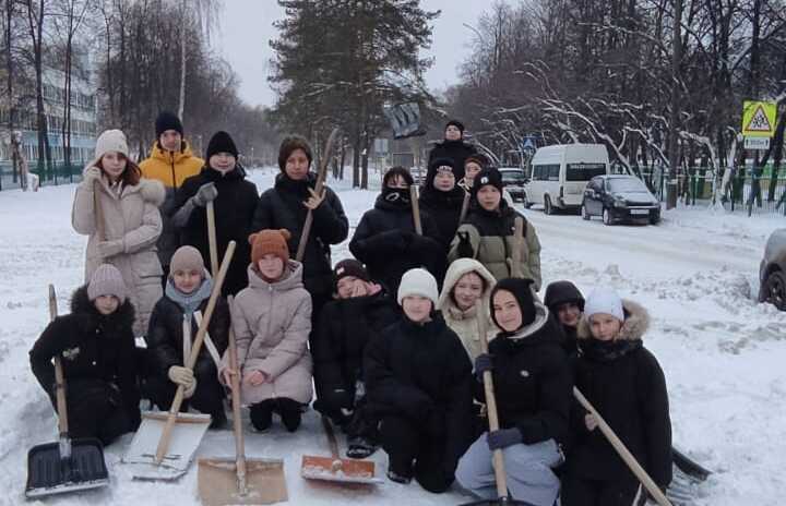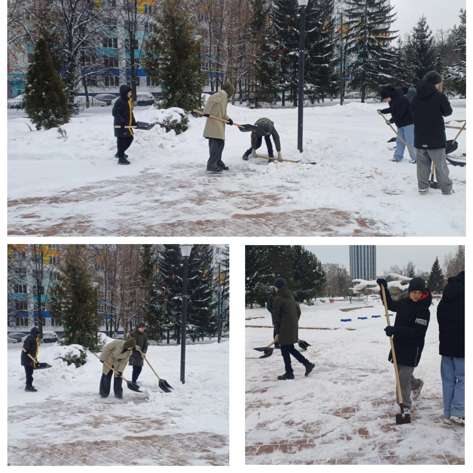 Также ученики школы №18 совместно с учителями расчистили от снега бульвар Строителей.