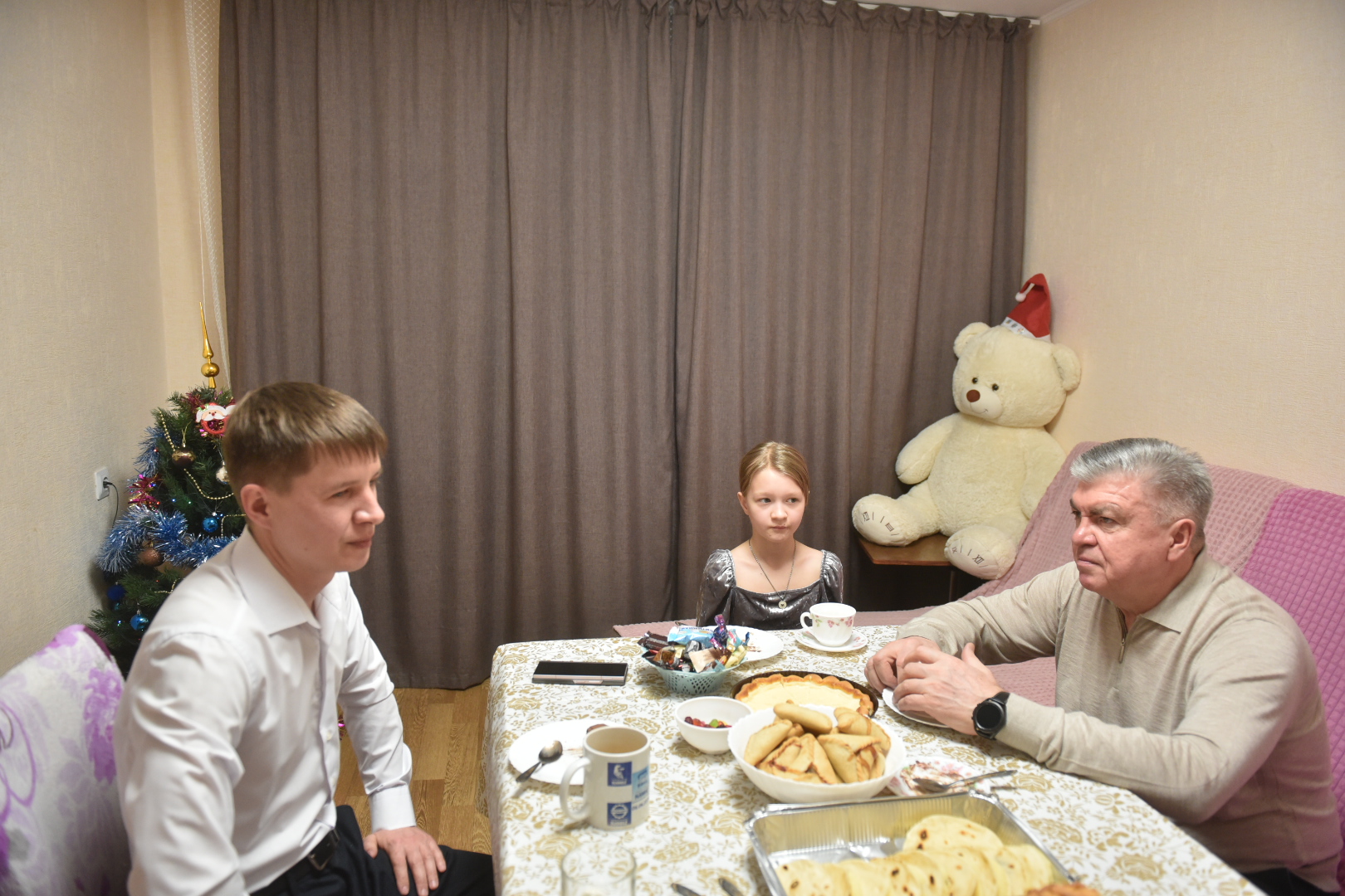 Бүген Чаллы хакиме Мөхәммәтовлар гаиләсендә булды һәм балаларга бүләкләр тапшырды.