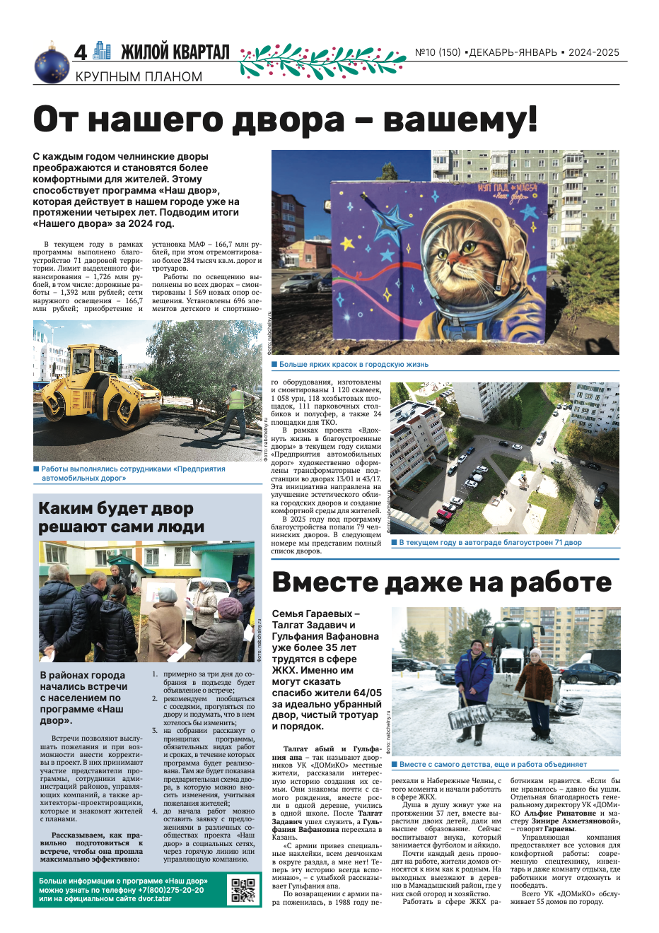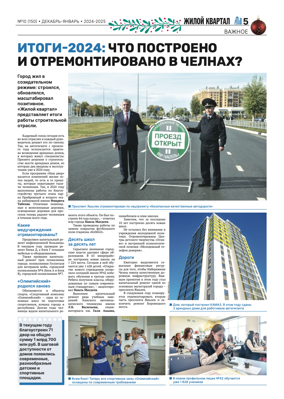 Итоги 2024 года, яркие события Набережных Челнов в сфере ЖКХ и не только. Управление информационной политики и по связям с общественностью представляет крайний выпуск газеты «Жилой квартал», который можно скачать здесь или прочитать ниже.