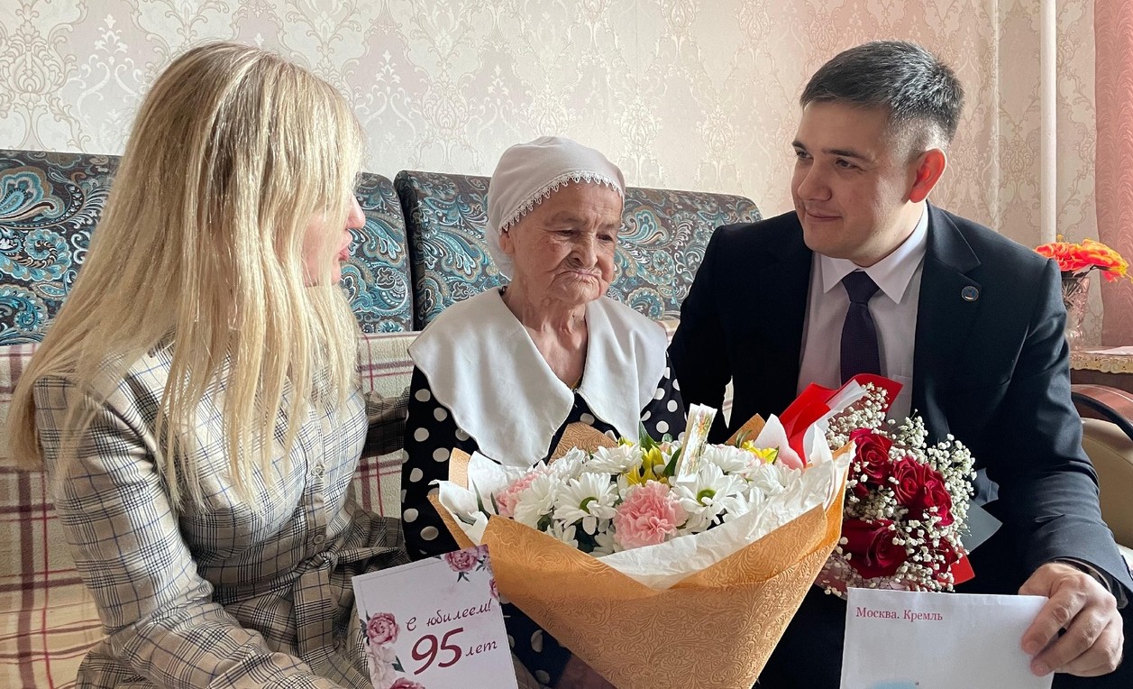 От имени Президента Российской Федерации Владимира Путина, мэра города Наиля Магдеева поздравления с 95-летним юбилеем получила ветеран Великой Отечественной войны, труженик тыла Амина Сагитовна Бадретдинова.