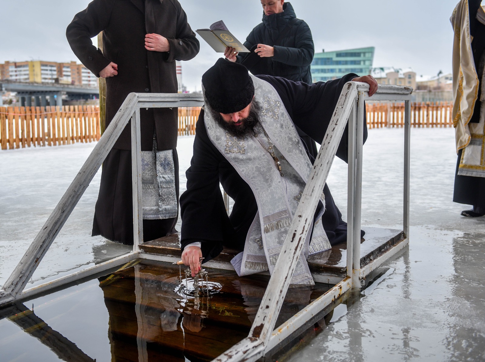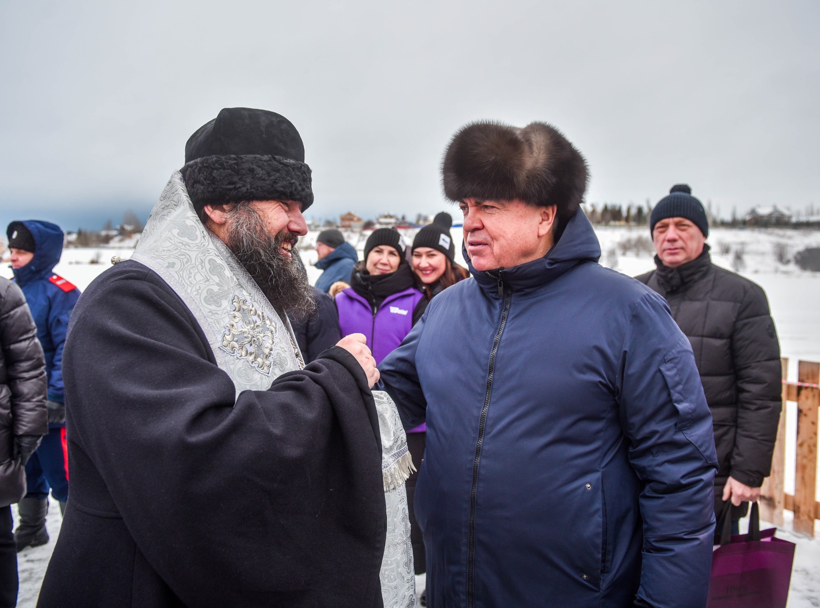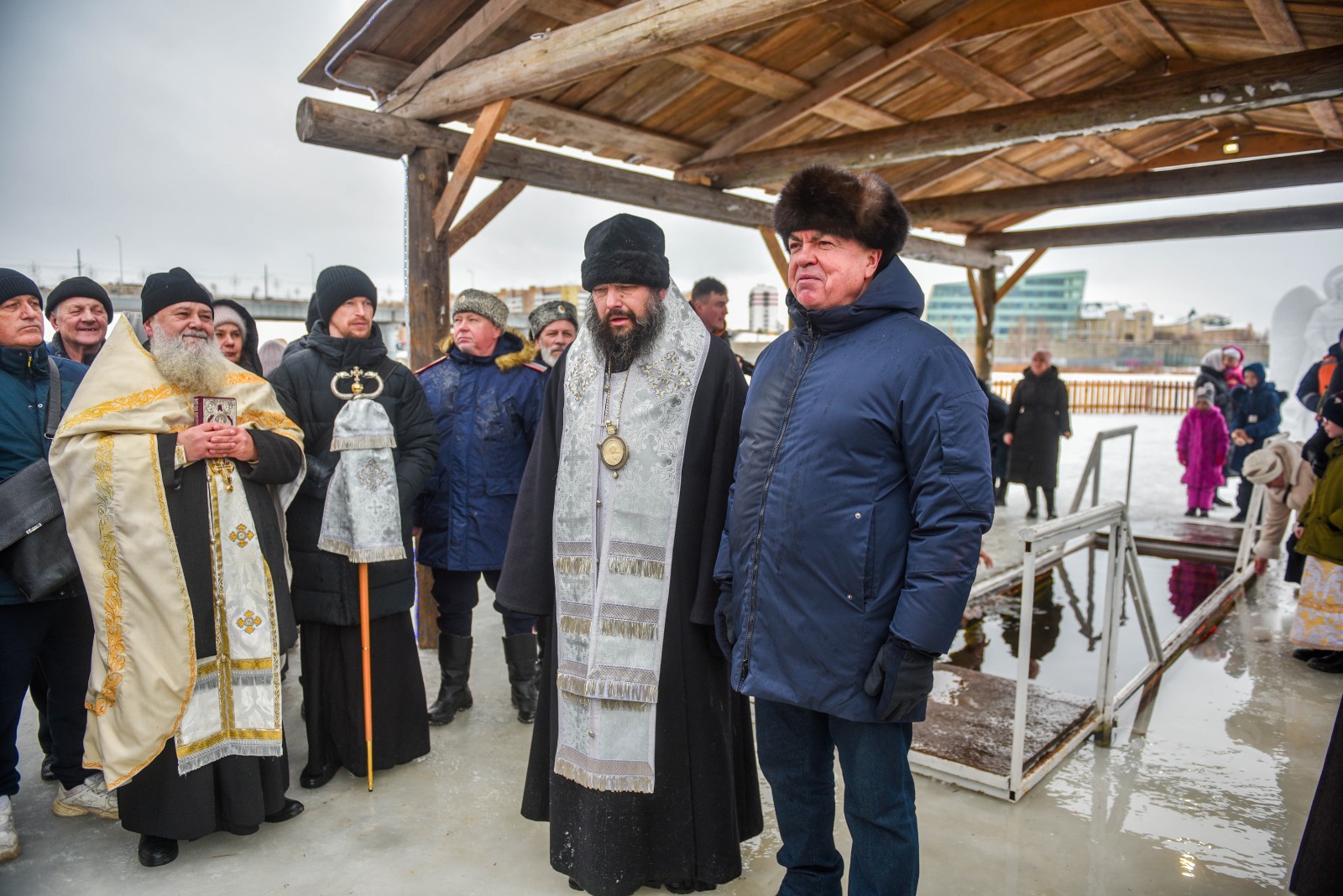 Мэр города Наиль Магдеев  встретил крестный ход. Возле купели Владыкой Гавриилом было прочитано молитвенное последование, совершен обряд освящения воды.