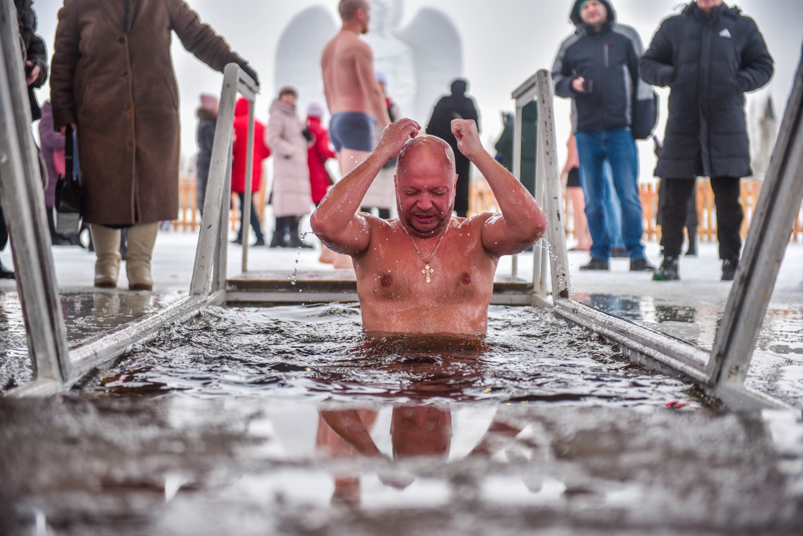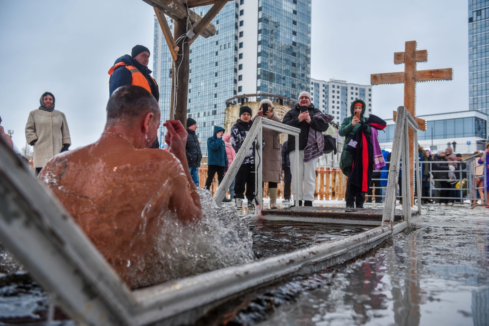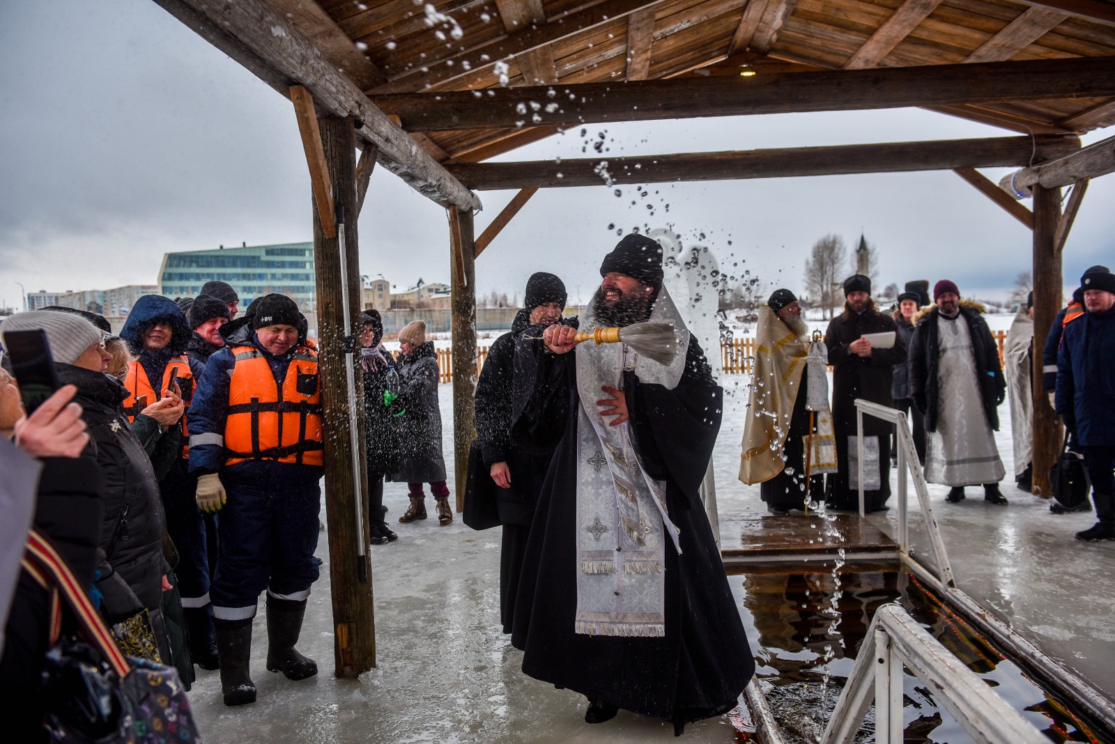 Мэр города Наиль Магдеев  встретил крестный ход. Возле купели Владыкой Гавриилом было прочитано молитвенное последование, совершен обряд освящения воды.