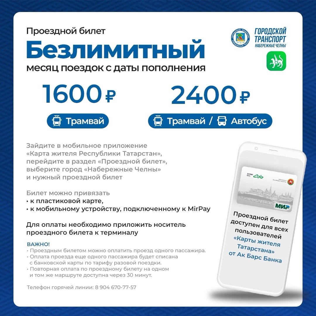 Кроме этого, возможность приобретения проездных билетов имеется для тех горожан, у которых есть Карта жителя Ак Барс Банка. Через приложение Карты жителя можно приобрести проездной на тех же условиях на один месяц», – прокомментировал руководитель Исполнительного комитета Фарид Салахов.