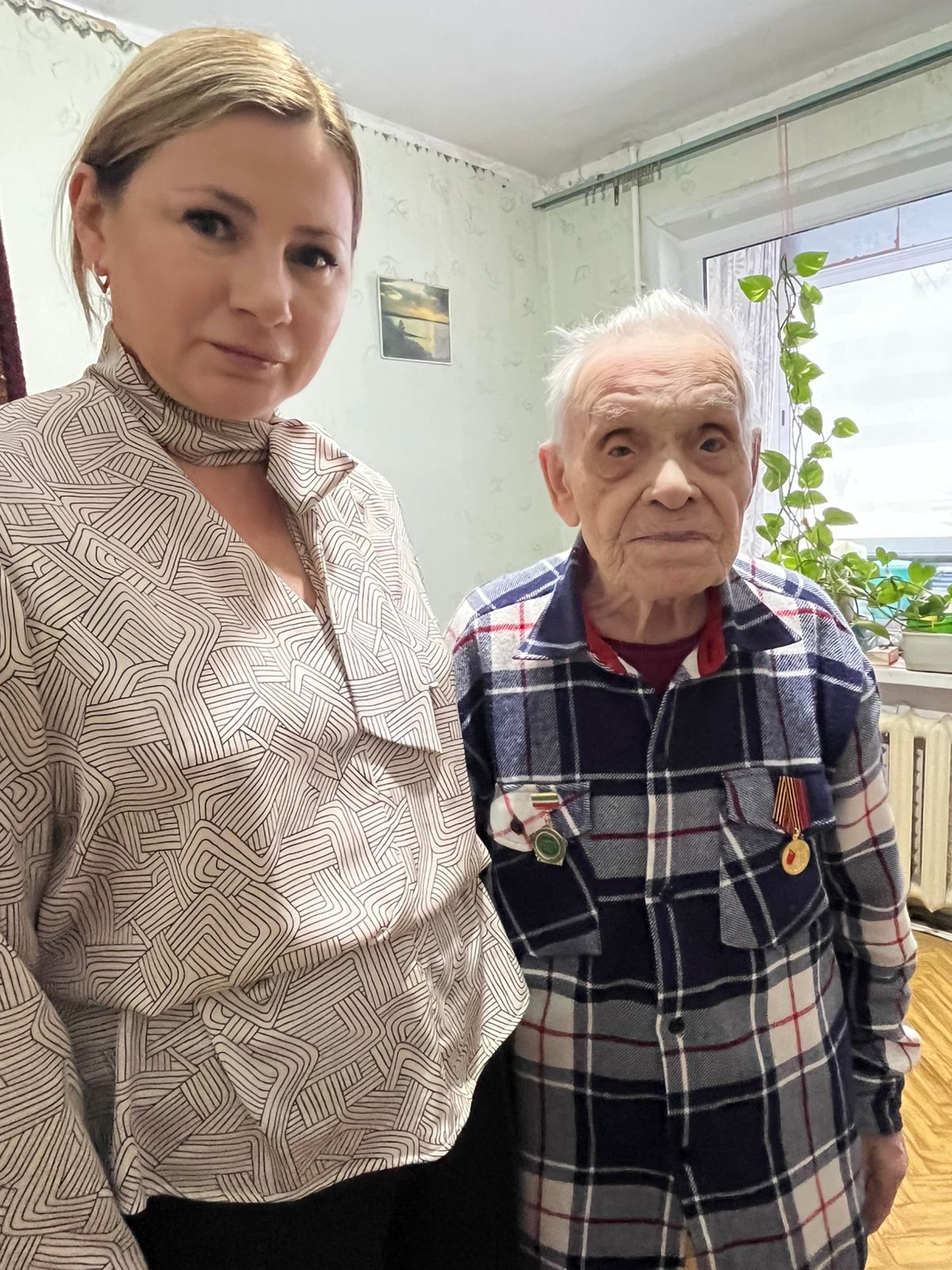Заместитель главы муниципального образования Ирина Сагидуллина вручила медали и звания «Почетный гражданин города Набережные Челны» ветеранам войны: Анатолию Александровичу Русских,