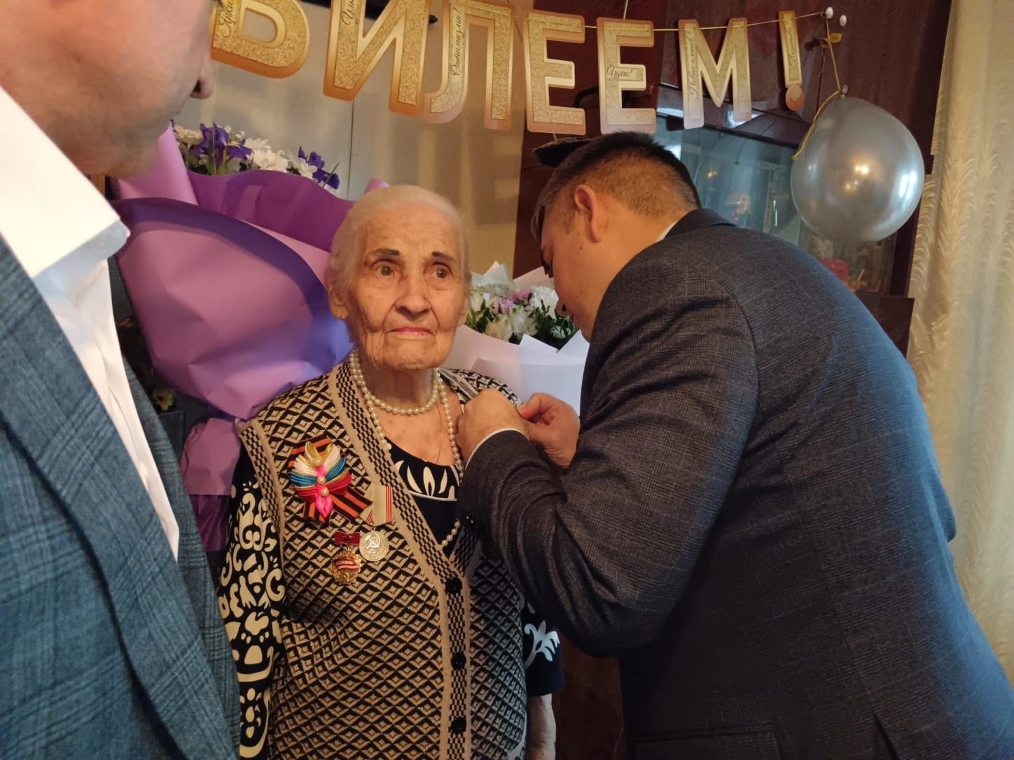 В кругу семьи юбиляру вручили юбилейную медаль «80 лет Победы в Великой Отечественной войне 1941-1945 гг.», поздравительные письма и подарки, торт от основательницы и бренд-шефа кондитерской «Медовик» Эльвиры Максимовы.
