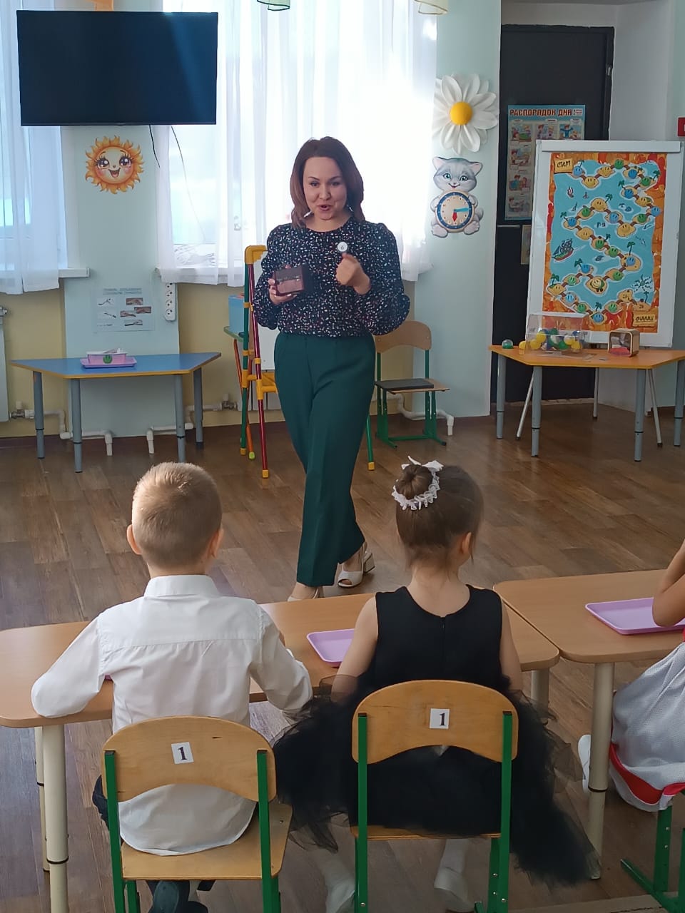 Педагоглар таныш булмаган балалар белән шөгыльләнде һәм үзләренең иҗади күнекмәләрен күрсәтте.