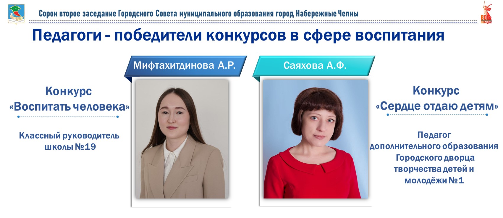 Победители конкурсов в сфере воспитания – классный руководитель школе №19 Алина Рауфовна Мифтахитдинова и педагог ГЦДТ №1 Айгуль Фиргатовна Саяхова.