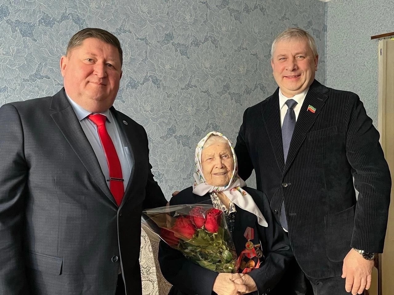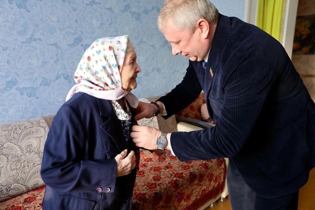 Глава администрации Автозаводского района Айрат Хуснуллин совместно с депутатом Государственного Совета Республики Татарстан Андреем Ляпуновым от имени Президента Российской Федерации Владимира Путина вручили юбилейную медаль «80 лет Победы в Великой Отечественной войне 1941-1945гг.» Анне Дмитриевне Косаревой.