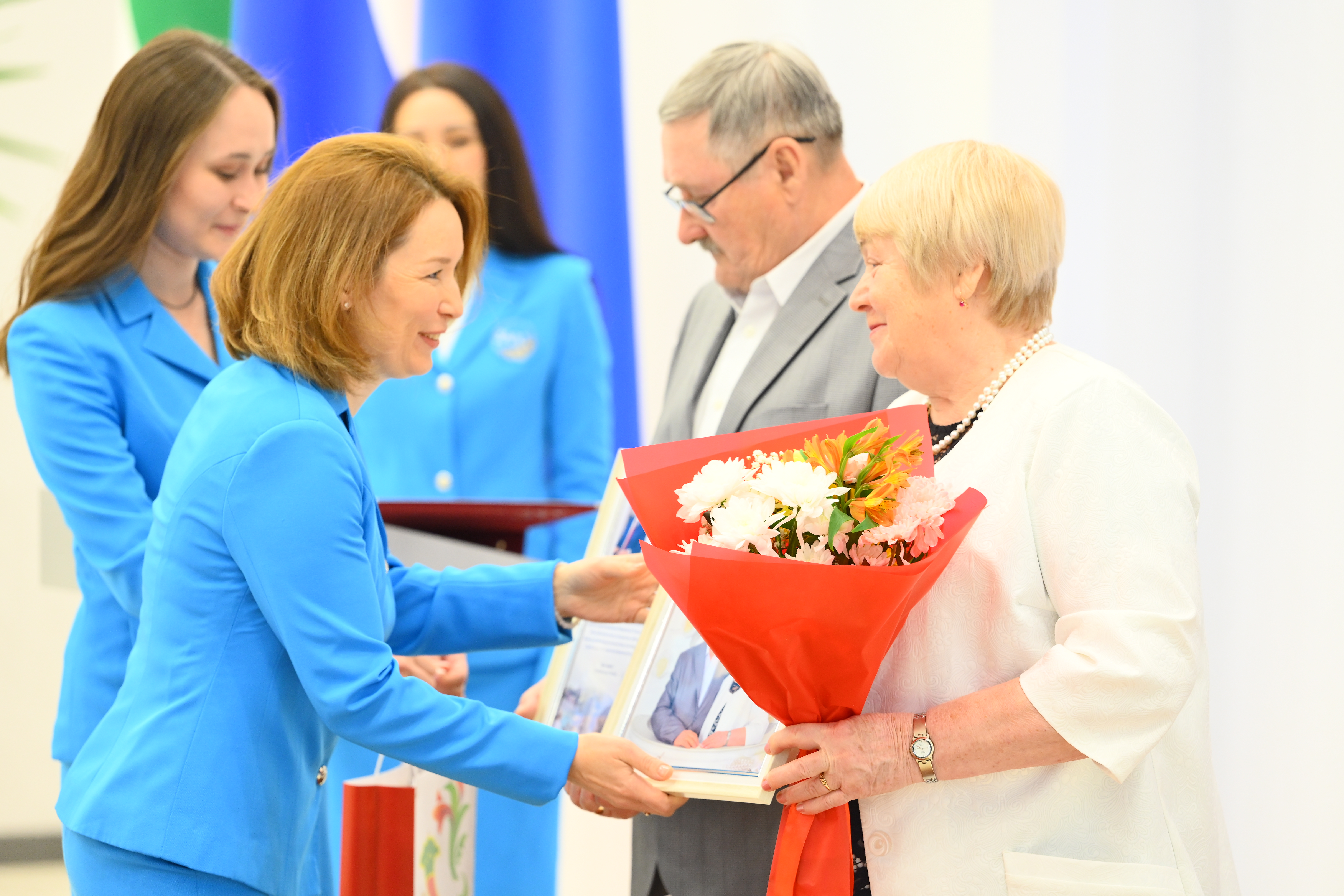Заместитель главы муниципального образования  Ирина Сагидуллина поздравила юбиляров и  вручила им памятные подарки от имени мэра города Наиля Магдеев.