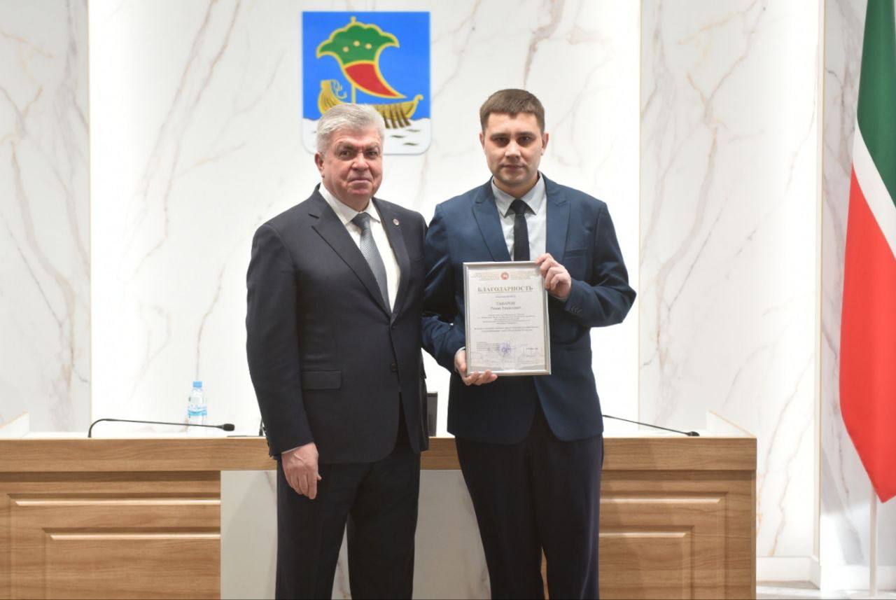 За высокие достижения в области развития военной истории, гуманитарного знания и реализацию важных общественных проектов историко-патриотической направленности Медалью Министерства обороны Российской Федерации «Памяти героев Отечества» награжден президент Ассоциации «Некоммерческое партнерство «Логистика и автоперевозки Татарстана» Михаил Левашов. За оказанную поддержку и помощь военнослужащим, выполняющим задачи в зоне специальной военной операции Нагрудным знаком «Бесстрашный» 1 степени от командующего группировкой войск «Север», генерала-полковника Александра Лапина награжден помощник Мэра города по противодействию коррупции Рамиль Файсханов. Также Наиль Магдеев вручил за вклад в развитие системы предоставления государственных и муниципальных услуг в Республике Татарстан Благодарности министра цифрового развития государственного управления, информационных технологий и связи Республики Татарстан сотрудникам Центрального филиала по городу Набережные Челны МФЦ. Поощрены главные специалисты Рамис Гафаров и Алена Федорова, а также заместитель начальника отдела Евгения Сидоркова