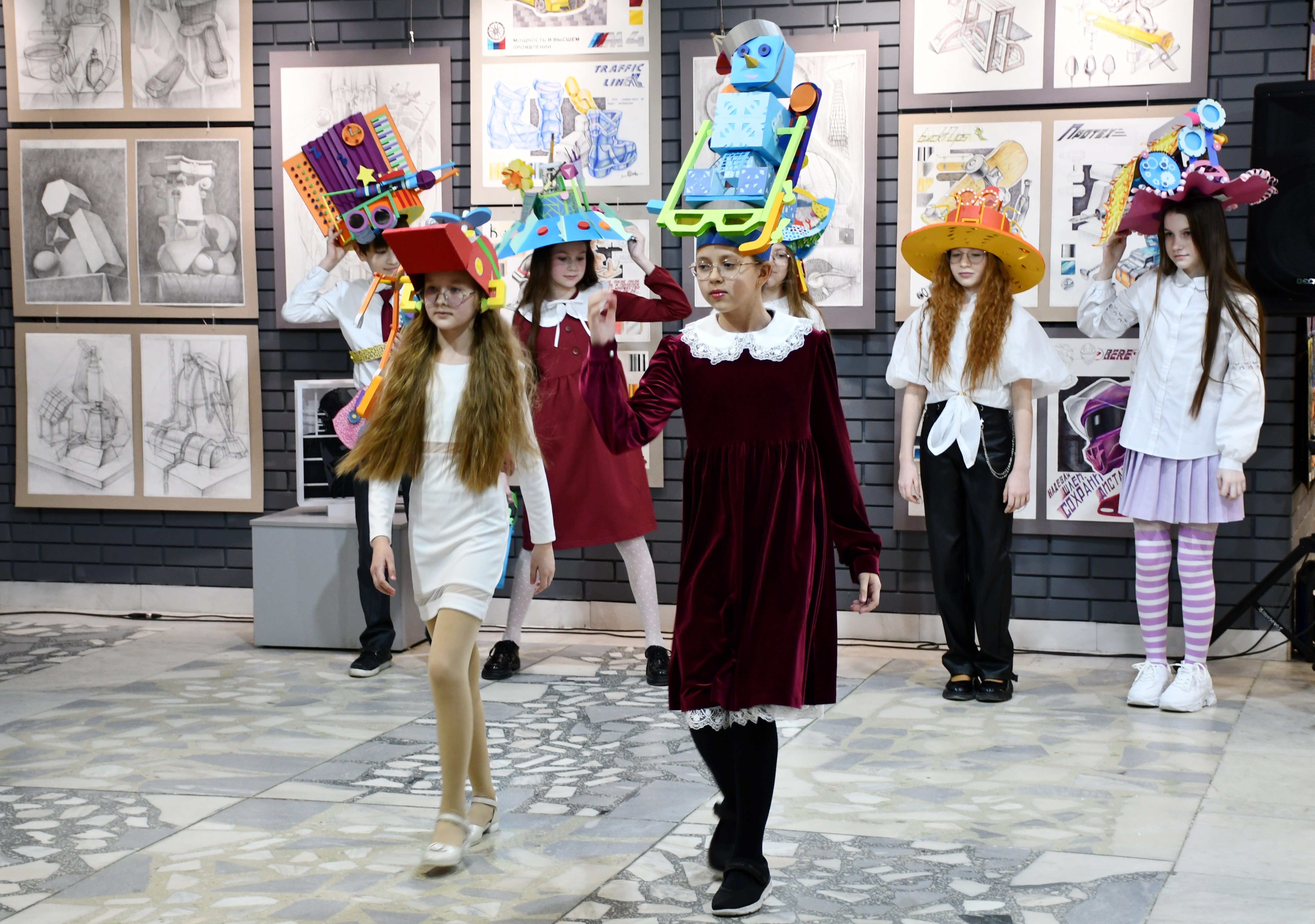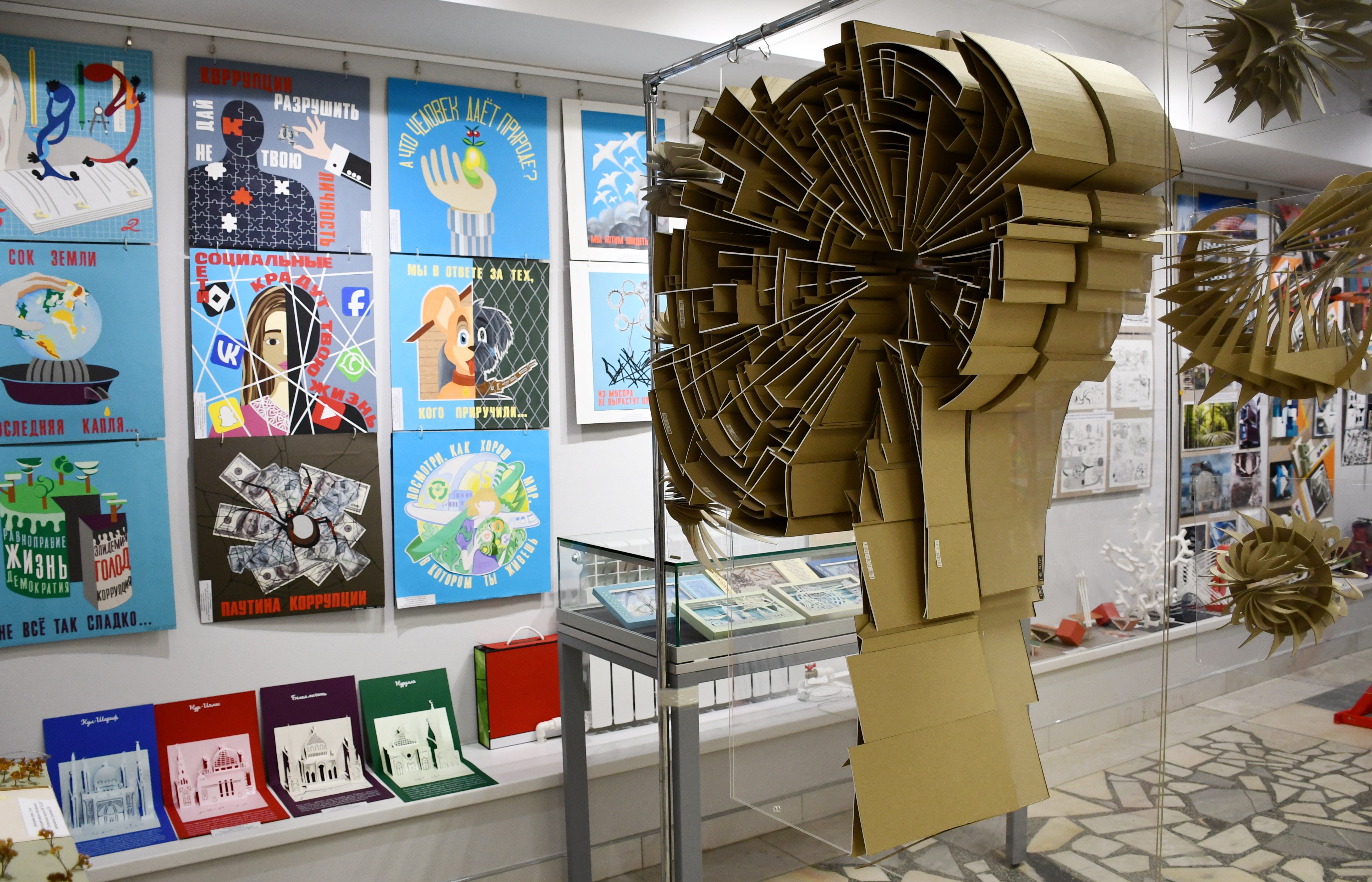 На выставке представлены работы учеников в различных техниках - архитектурные конструкции, дизайн-проекты и их макеты, работы учащихся в области черчения, рисунка, цветоведения, бумажной пластики.