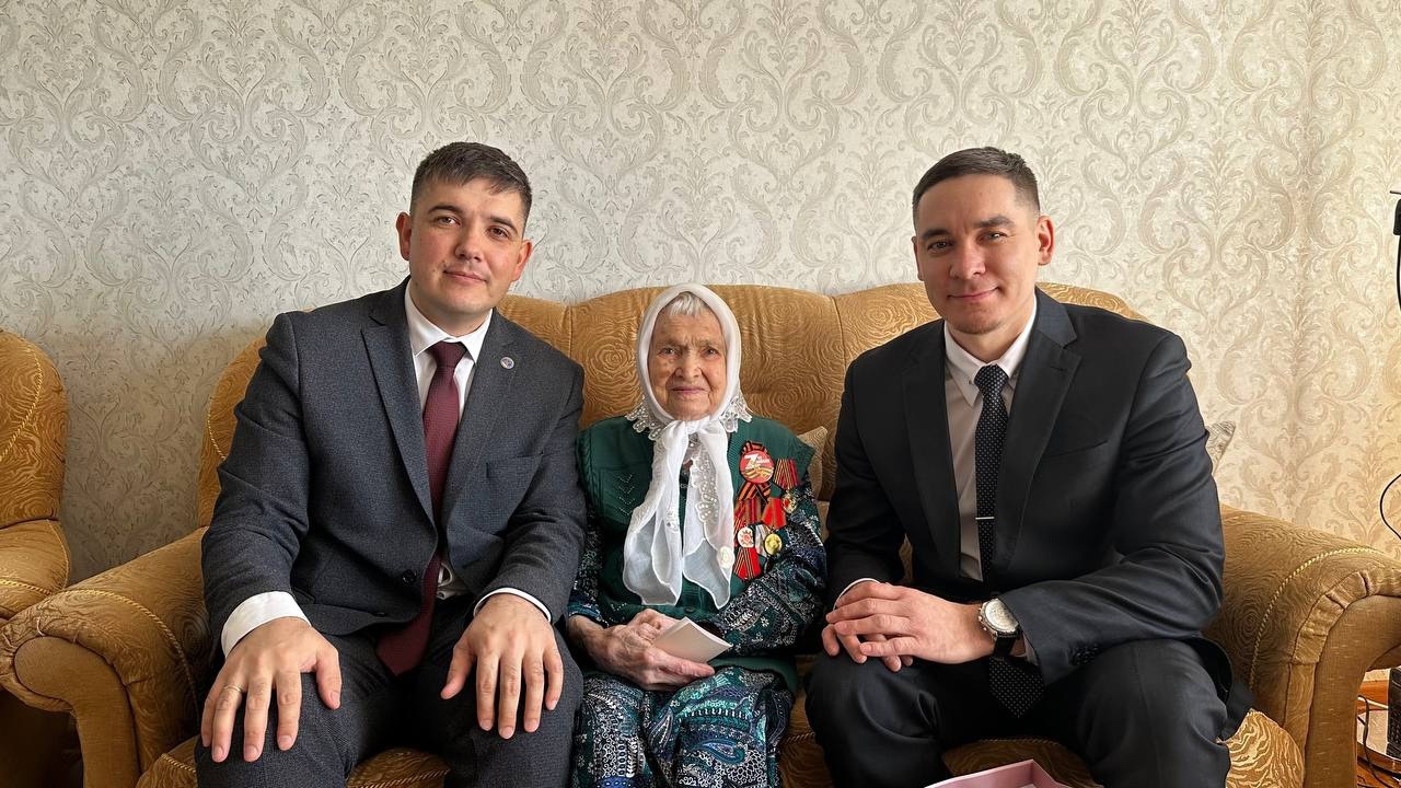 Истәлекле дата алдыннан Үзәк районы хакимияте башлыгы Фидәрис Хәбибуллин һәм Шәһәр Советы депутаты Марсель Төхфәтуллин ветераннар янына барды.