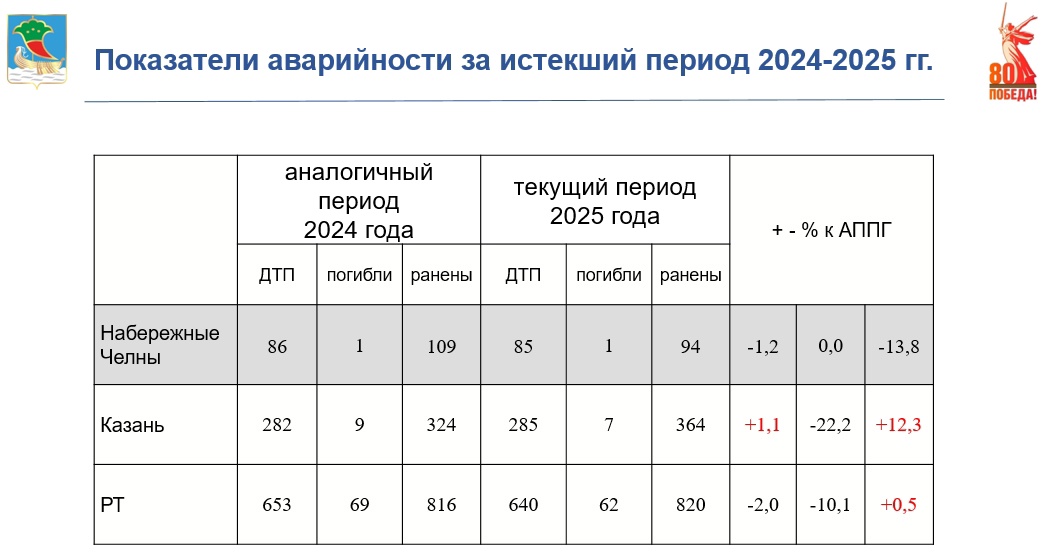 На территории города произошло с начала года 85 ДТП, при которых пострадало 94 человека и один погиб. В целом, количество аварий за год снизилось на 1,2%, а число пострадавших — на 13,8%. О первом случае смертельного ДТП спикер высказался отдельно.